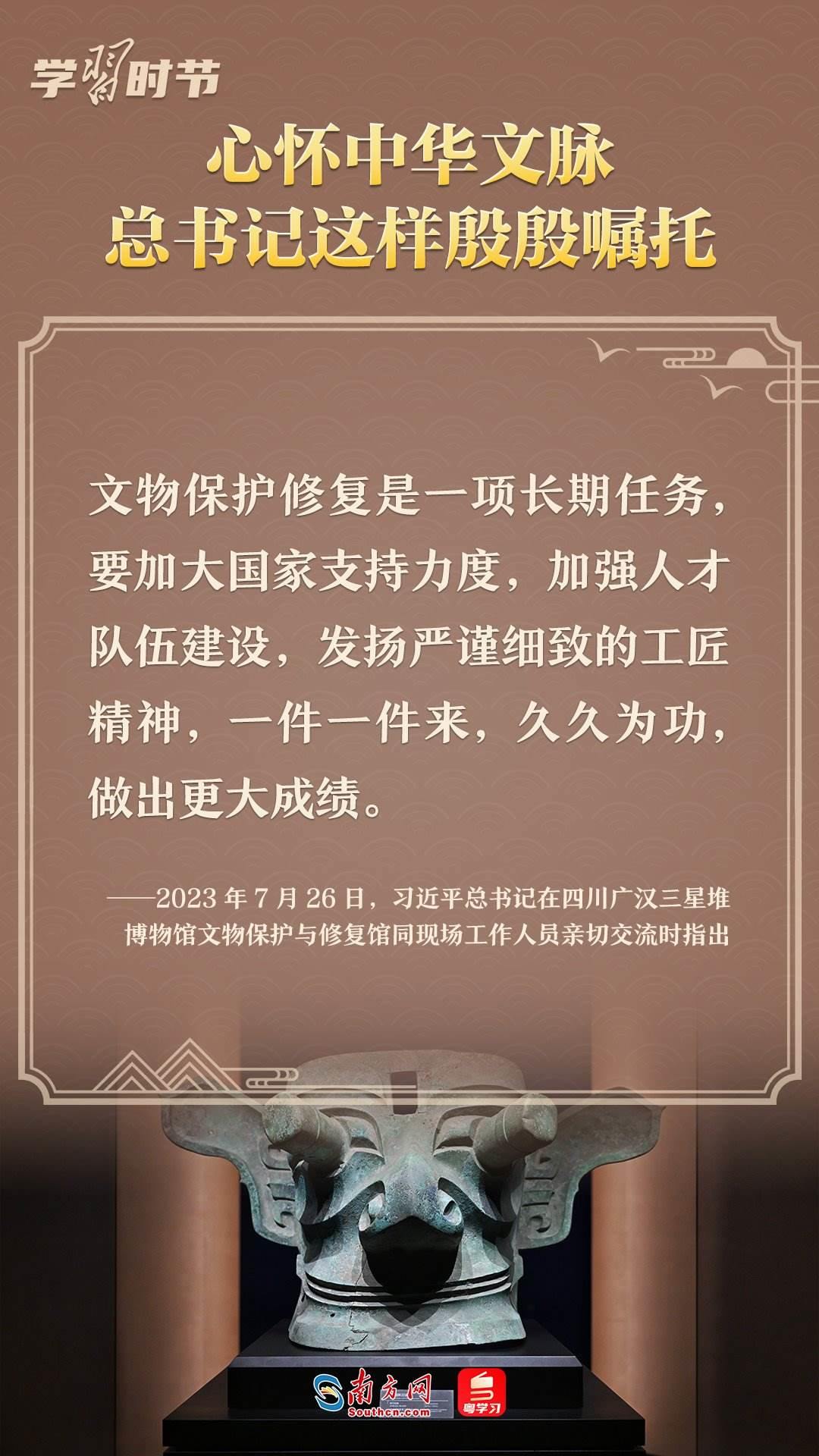 習(xí)近平總書(shū)記強(qiáng)調(diào),只有全面深入了解中華文明的歷史,才能更有效地推動(dòng)中華優(yōu)秀傳統(tǒng)文化創(chuàng)造性轉(zhuǎn)化、創(chuàng)新性發(fā)展,更有力地推進(jìn)中國(guó)特色社會(huì)主義文化建設(shè),建設(shè)中華民族現(xiàn)代文明?;赝?023,總書(shū)記多次就中華文化傳承發(fā)展作出重要闡述。讓我們一起學(xué)習(xí),一同賡續(xù)歷史文脈、譜寫(xiě)當(dāng)代華章。