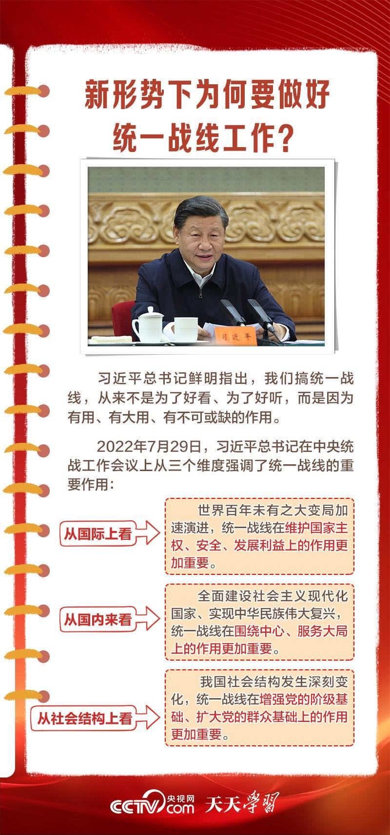 1月16日出版的第2期《求是》雜志發(fā)表了習近平總書記的重要文章《完整、準確、全面貫徹落實關于做好新時代黨的統(tǒng)一戰(zhàn)線工作的重要思想》,該文是習近平總書記2022年7月在中央統(tǒng)戰(zhàn)工作會議上講話的一部分。文章指出,統(tǒng)一戰(zhàn)線是黨克敵制勝、執(zhí)政興國的重要法寶,是團結海內外全體中華兒女實現中華民族偉大復興的重要法寶,必須長期堅持。