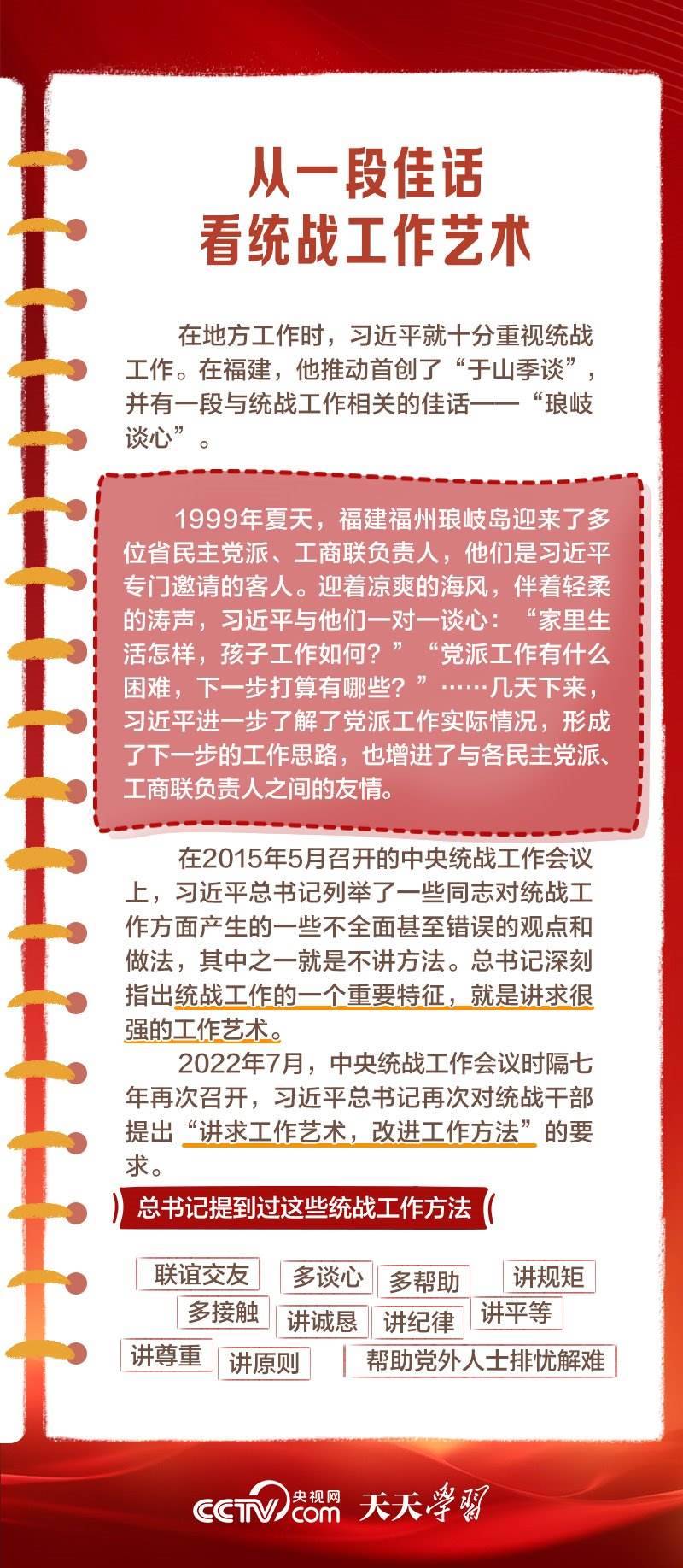 在百余年的奮斗歷程中,我們黨始終把統(tǒng)一戰(zhàn)線擺在重要位置,讓團結的旋律始終高昂,共同奮斗的力量始終激蕩。從“重要法寶”到“強大法寶”,體現出總書記對黨的統(tǒng)戰(zhàn)工作一以貫之的高度重視。