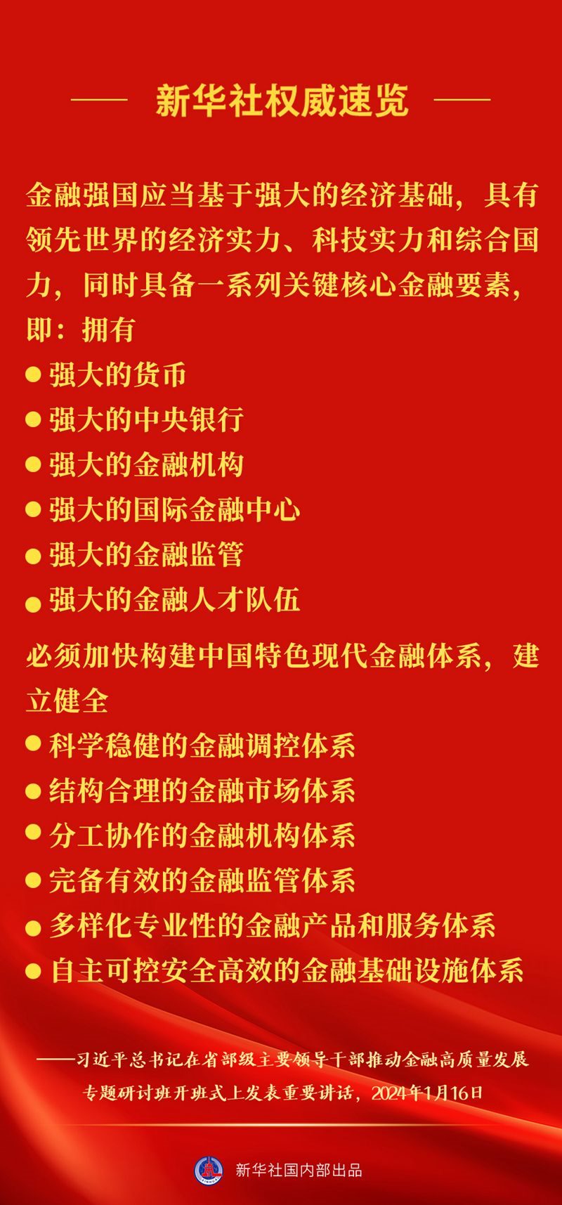 習(xí)近平總書記16日上午在省部級主要領(lǐng)導(dǎo)干部推動金融高質(zhì)量發(fā)展專題研討班開班式上發(fā)表重要講話,一起來看講話要點。