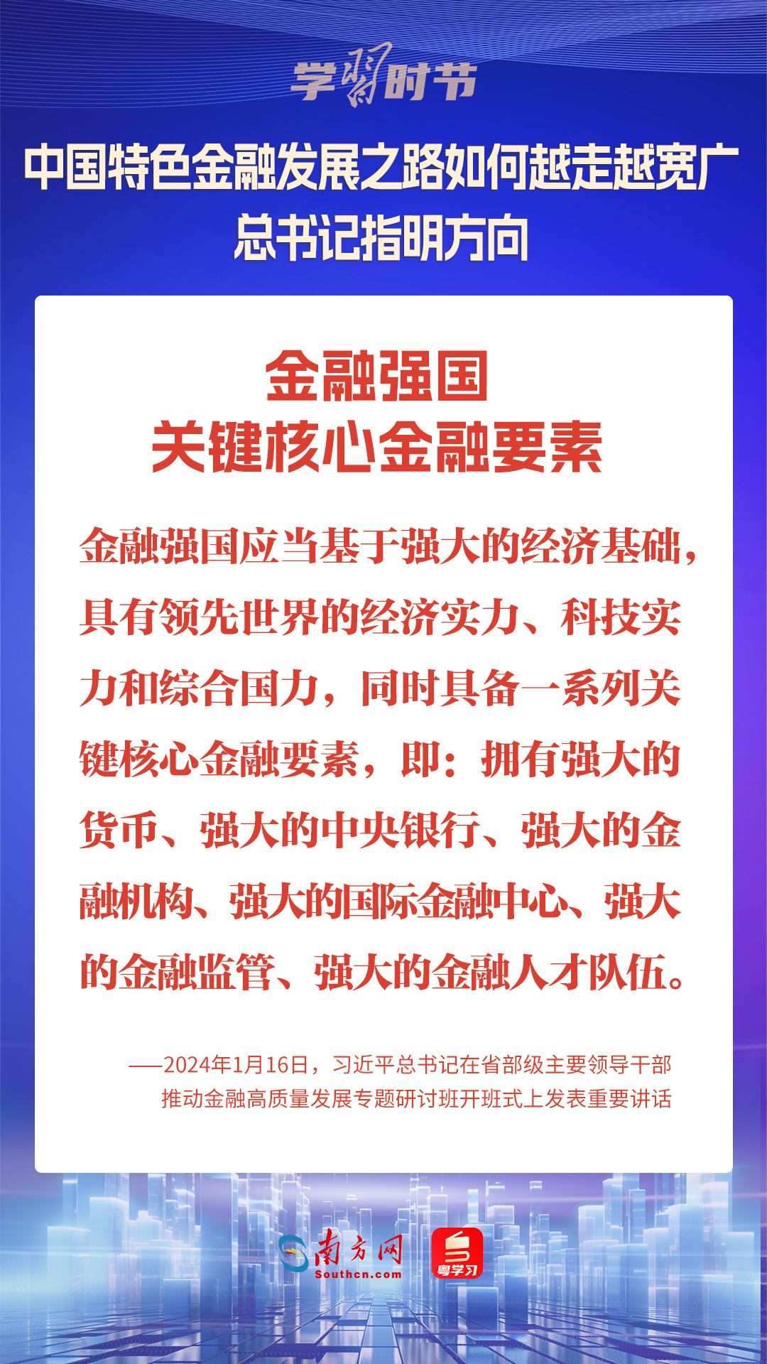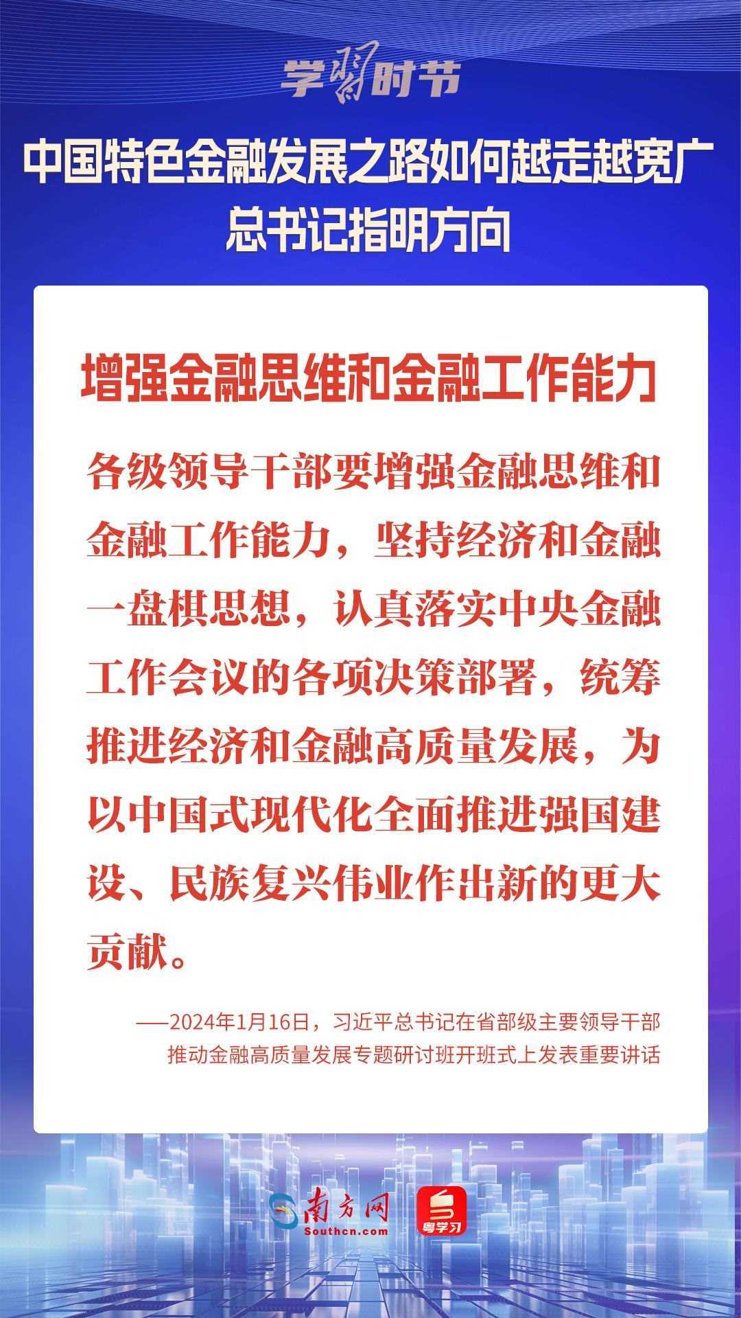 1月16日,中共中央總書記、國(guó)家主席、中央軍委主席習(xí)近平在省部級(jí)主要領(lǐng)導(dǎo)干部推動(dòng)金融高質(zhì)量發(fā)展專題研討班開班式上發(fā)表重要講話,為中國(guó)特色金融發(fā)展之路指明方向。