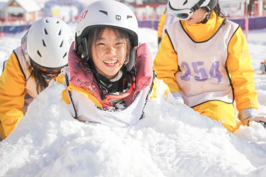 孩子們?cè)谖鲙X雪山滑雪場(chǎng)玩雪。(呂輝 攝)