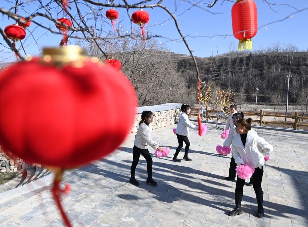 村廣場(chǎng)上,高高掛起的紅燈籠點(diǎn)綴出濃濃年味兒,“煙火氣”里升騰起新的希望。