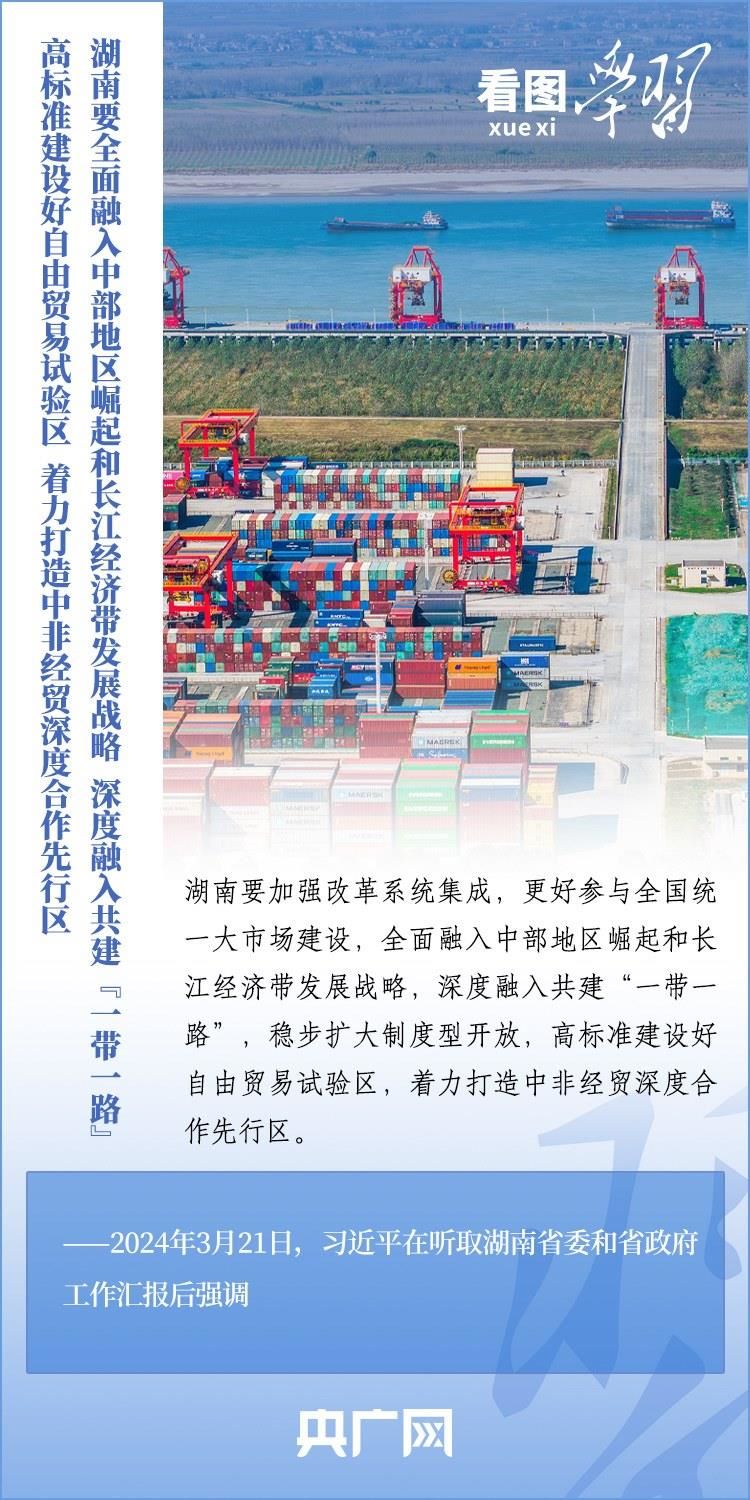 3月18日至21日,習(xí)近平總書記考察湖南長沙、常德等地,深入學(xué)校、企業(yè)、歷史文化街區(qū)、鄉(xiāng)村等進(jìn)行調(diào)研??倳洀娬{(diào),湖南要牢牢把握自身在構(gòu)建新發(fā)展格局中的戰(zhàn)略定位,堅持穩(wěn)中求進(jìn)工作總基調(diào),堅持高質(zhì)量發(fā)展不動搖,堅持改革創(chuàng)新、求真務(wù)實,在打造國家重要先進(jìn)制造業(yè)高地、具有核心競爭力的科技創(chuàng)新高地、內(nèi)陸地區(qū)改革開放高地上持續(xù)用力,在推動中部地區(qū)崛起和長江經(jīng)濟(jì)帶發(fā)展中奮勇爭先,奮力譜寫中國式現(xiàn)代化湖南篇章。一起來學(xué)習(xí)!