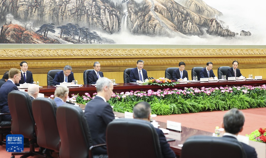 ??美中關(guān)系全國(guó)委員會(huì)董事會(huì)主席格林伯格、黑石集團(tuán)董事長(zhǎng)兼首席執(zhí)行官蘇世民、高通公司總裁兼首席執(zhí)行官安蒙、哈佛大學(xué)肯尼迪政府學(xué)院創(chuàng)始院長(zhǎng)艾利森、美中貿(mào)易全國(guó)委員會(huì)會(huì)長(zhǎng)艾倫等美方代表在發(fā)言中感謝習(xí)近平主席撥冗會(huì)見。他們表示,過去幾十年來,中國(guó)實(shí)現(xiàn)了非凡經(jīng)濟(jì)增長(zhǎng)和轉(zhuǎn)型,體現(xiàn)了強(qiáng)大韌性和活力。在習(xí)近平主席卓越領(lǐng)導(dǎo)下,中國(guó)致力于發(fā)展新質(zhì)生產(chǎn)力,實(shí)現(xiàn)更可持續(xù)的高質(zhì)量發(fā)展。中國(guó)人民的發(fā)展權(quán)利應(yīng)該得到尊重。相信中國(guó)將實(shí)現(xiàn)自身發(fā)展目標(biāo),促進(jìn)世界經(jīng)濟(jì)發(fā)展和融合。一個(gè)強(qiáng)大、繁榮的中國(guó)是世界的正能量。美中經(jīng)濟(jì)關(guān)系緊密依存,兩國(guó)唯有和平共處,才能實(shí)現(xiàn)各自發(fā)展繁榮?!靶尬舻椎孪葳濉辈⒎潜厝?。美國(guó)企業(yè)贊賞中方近期出臺(tái)的一系列進(jìn)一步改革開放的重要舉措,看好中國(guó)經(jīng)濟(jì)發(fā)展前景,將堅(jiān)定不移繼續(xù)深耕中國(guó),同中國(guó)發(fā)展長(zhǎng)期緊密的合作關(guān)系。習(xí)近平主席同拜登總統(tǒng)去年11月在舊金山成功會(huì)晤,提振了美國(guó)各界和世界對(duì)美中關(guān)系未來的預(yù)期和信心。美國(guó)工商界和戰(zhàn)略學(xué)術(shù)界支持美中雙方加強(qiáng)各層級(jí)交往交流,增進(jìn)相互理解、信任與合作,攜手應(yīng)對(duì)全球性挑戰(zhàn),推動(dòng)建立穩(wěn)定、可持續(xù)、富有成效的美中關(guān)系。