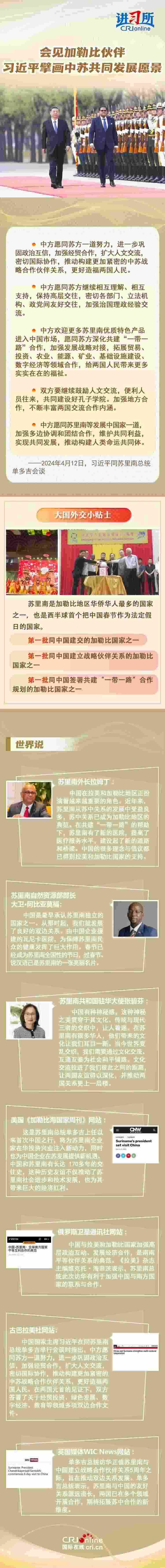 4月12日,中國(guó)國(guó)家主席習(xí)近平在北京同來(lái)華進(jìn)行國(guó)事訪問(wèn)的蘇里南總統(tǒng)單多吉舉行會(huì)談時(shí)表示,中方重視發(fā)展同加勒比國(guó)家關(guān)系,愿同蘇里南等發(fā)展中國(guó)家一道,加強(qiáng)多邊協(xié)調(diào)和團(tuán)結(jié)合作,維護(hù)共同利益,實(shí)現(xiàn)共同發(fā)展。