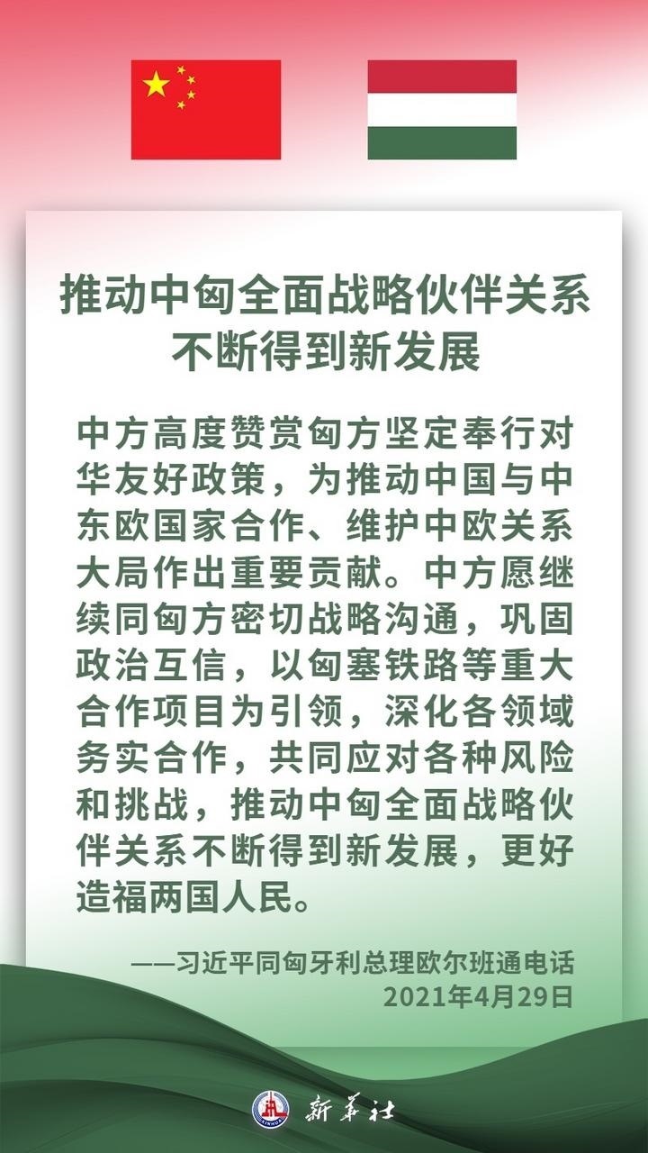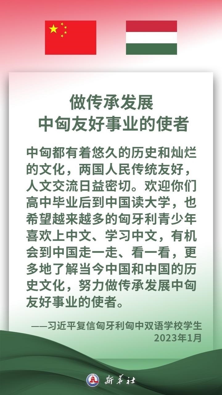 匈牙利是中東歐地區(qū)重要國家,是中方推進(jìn)共建“一帶一路”及中國-中東歐國家合作的重要合作伙伴。近年來,在兩國領(lǐng)導(dǎo)人的戰(zhàn)略引領(lǐng)下,中匈關(guān)系保持高水平發(fā)展,兩國高層交往密切,政治互信持續(xù)深化,各領(lǐng)域合作扎實(shí)推進(jìn)、成果豐碩,為兩國人民帶來切實(shí)利益。習(xí)近平主席說,中方愿同匈方繼續(xù)做彼此信賴、合作共贏的好朋友、好伙伴。