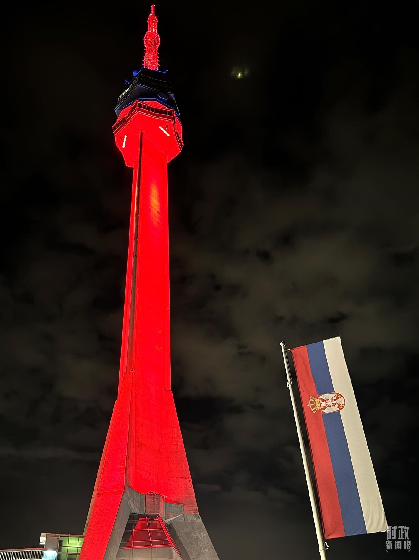 △貝爾格萊德夜晚的中國紅。(總臺央視記者李增仁拍攝)