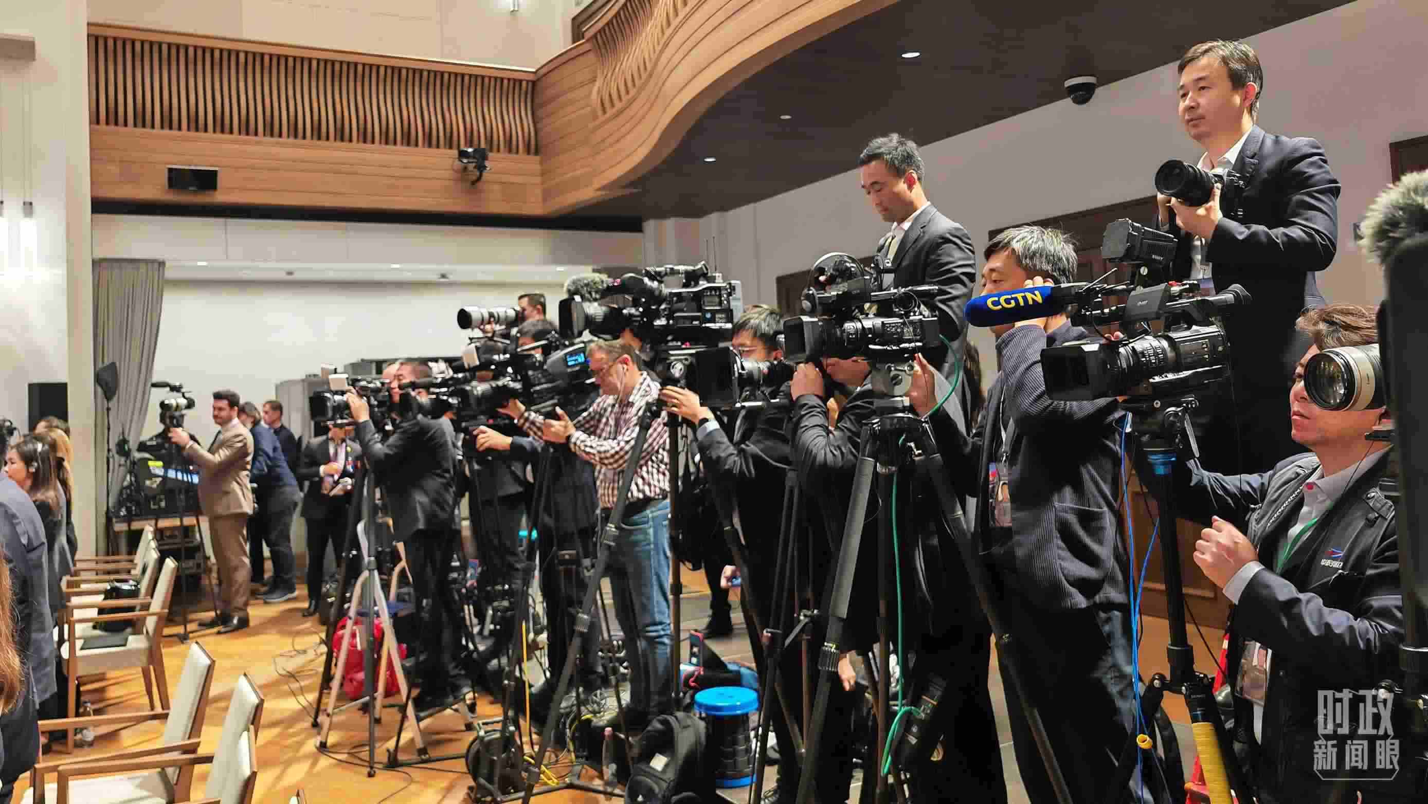 △習主席同歐爾班總理共同會見記者,現(xiàn)場記者云集。(總臺央廣記者馬喆拍攝)