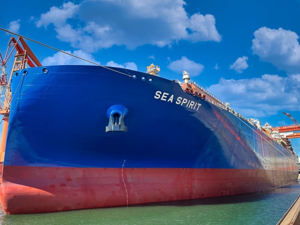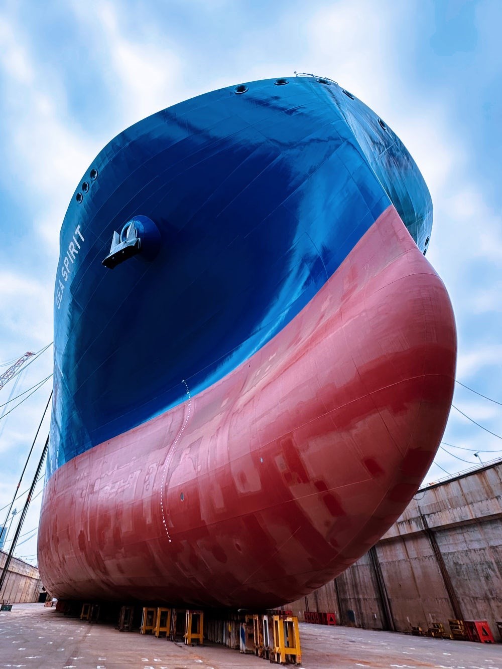 5月27日,我國自主研發(fā)設計的17.5萬立方米液化天然氣(LNG)運輸船在中國船舶集團大連船舶重工集團有限公司出塢。(中國船舶大連造船供圖)