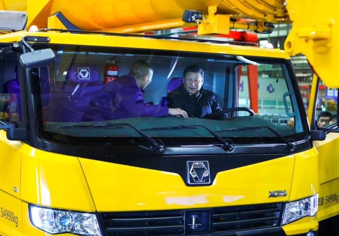 △2017年12月12日,習(xí)近平總書記在江蘇徐州徐工集團(tuán)坐進(jìn)剛下線的XCA220型全地面起重機(jī)駕駛室,向技術(shù)人員詳細(xì)詢問(wèn)起重機(jī)的性能、產(chǎn)量、價(jià)格等。