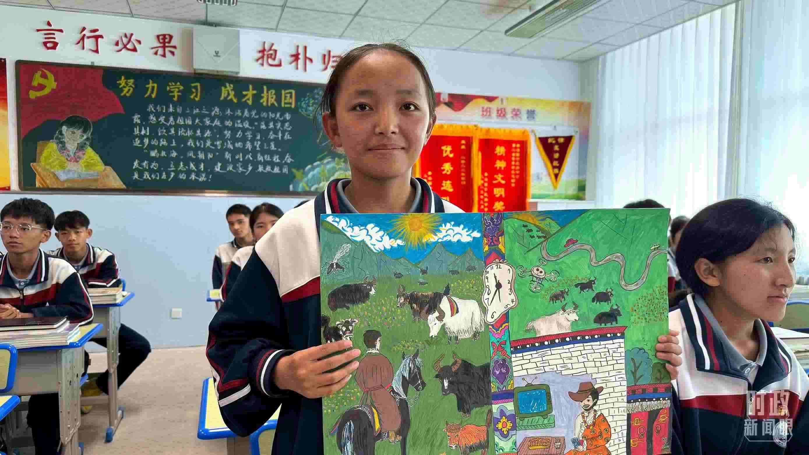 △果洛西寧民族中學(xué)高一(1)班的“新時(shí)代、新家鄉(xiāng)”主題思政課。(總臺央視記者許永松、國廣記者李晉拍攝)