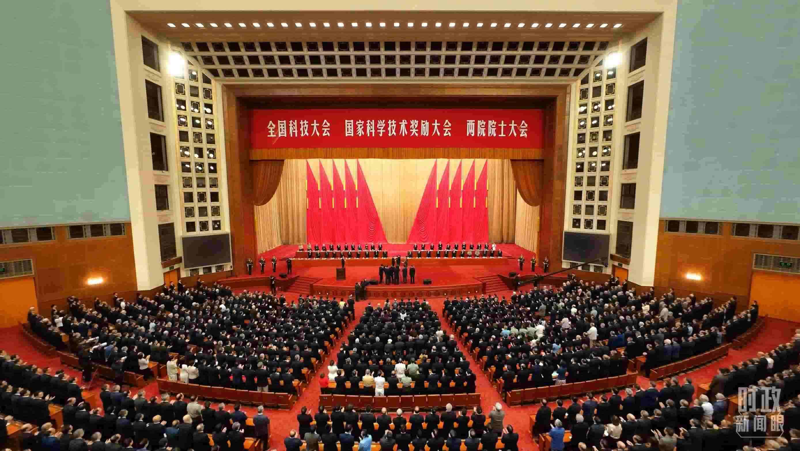 △全國科技大會、國家科學(xué)技術(shù)獎勵大會、兩院院士大會在北京人民大會堂舉行。(總臺央視記者李增仁拍攝)