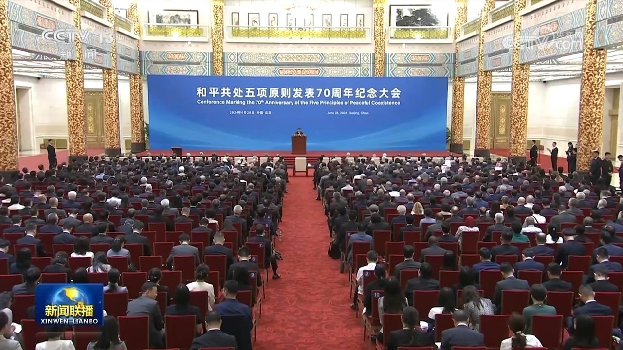 央視網(wǎng)消息(新聞聯(lián)播):6月28日,國(guó)家主席習(xí)近平出席和平共處五項(xiàng)原則發(fā)表70周年紀(jì)念大會(huì),并發(fā)表題為《弘揚(yáng)和平共處五項(xiàng)原則,攜手構(gòu)建人類(lèi)命運(yùn)共同體》的重要講話。習(xí)近平主席在講話中全面闡釋和平共處五項(xiàng)原則的精神內(nèi)涵和時(shí)代價(jià)值,在世界百年未有之大變局中指明構(gòu)建人類(lèi)命運(yùn)共同體的前進(jìn)方向,發(fā)出“全球南方”同世界各國(guó)人民共創(chuàng)美好未來(lái)的時(shí)代強(qiáng)音。與會(huì)國(guó)內(nèi)外人士表示,習(xí)近平主席的重要講話飽含著對(duì)歷史的深邃思考、對(duì)現(xiàn)實(shí)的深刻分析、對(duì)未來(lái)的長(zhǎng)遠(yuǎn)謀劃,必將對(duì)推動(dòng)各國(guó)同心協(xié)力建設(shè)更加美好世界產(chǎn)生重大而深遠(yuǎn)的影響。
