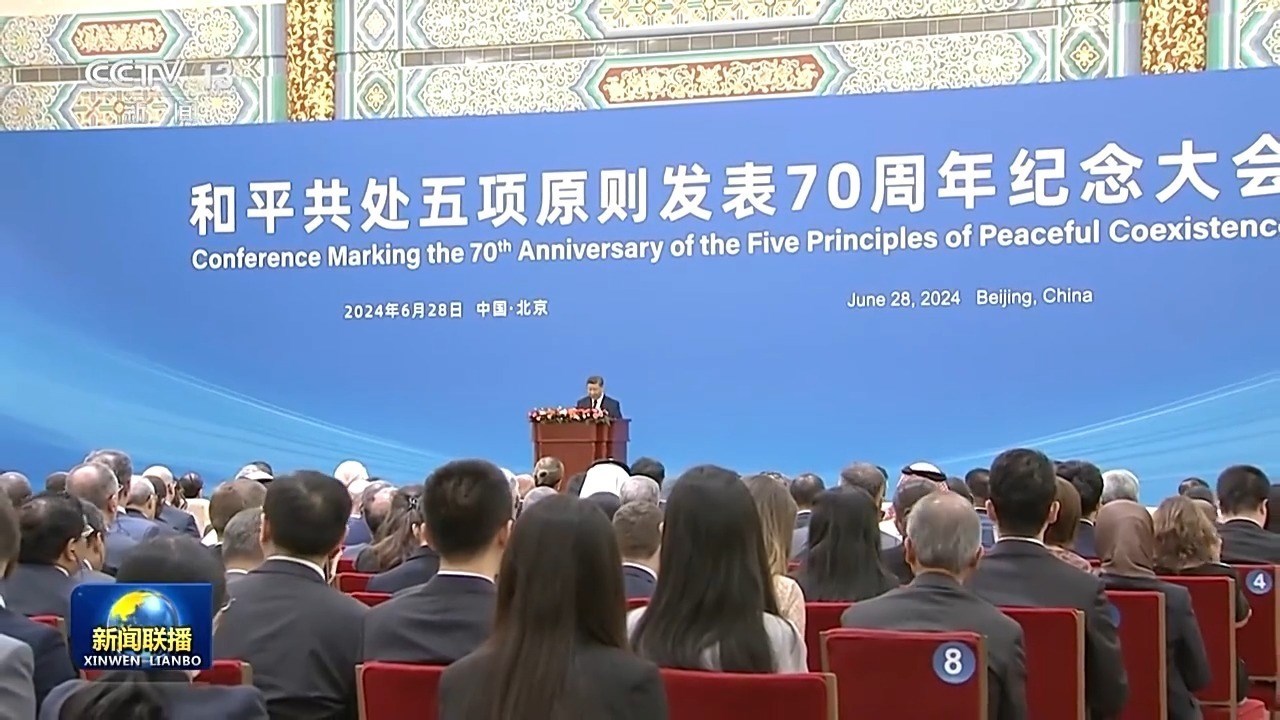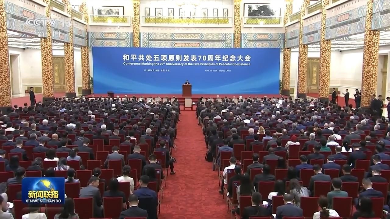 6月28日,國家主席習(xí)近平出席和平共處五項(xiàng)原則發(fā)表70周年紀(jì)念大會(huì),并發(fā)表題為《弘揚(yáng)和平共處五項(xiàng)原則,攜手構(gòu)建人類命運(yùn)共同體》的重要講話。習(xí)近平主席在講話中全面闡釋和平共處五項(xiàng)原則的精神內(nèi)涵和時(shí)代價(jià)值,在世界百年未有之大變局中指明構(gòu)建人類命運(yùn)共同體的前進(jìn)方向,發(fā)出“全球南方”同世界各國人民共創(chuàng)美好未來的時(shí)代強(qiáng)音。與會(huì)國內(nèi)外人士表示,習(xí)近平主席的重要講話飽含著對(duì)歷史的深邃思考、對(duì)現(xiàn)實(shí)的深刻分析、對(duì)未來的長遠(yuǎn)謀劃,必將對(duì)推動(dòng)各國同心協(xié)力建設(shè)更加美好世界產(chǎn)生重大而深遠(yuǎn)的影響。