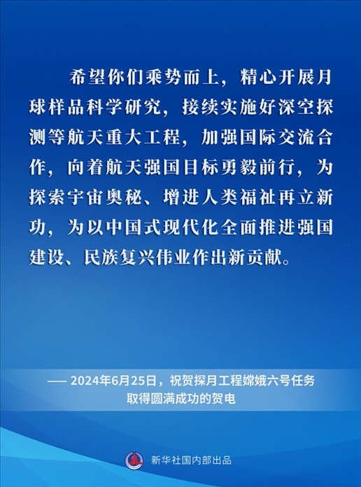 黨的十八大以來,在以習近平同志為核心的黨中央關(guān)心引領(lǐng)下,中國探月工程取得舉世矚目的重大成就,為探索宇宙奧秘、增進人類福祉屢立新功,為以中國式現(xiàn)代化全面推進強國建設(shè)、民族復興偉業(yè)作出卓越貢獻。