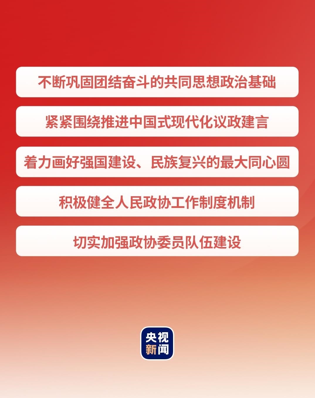 在這次慶祝大會上,習近平總書記從5個方面提出要求,寄望人民政協(xié)發(fā)揚優(yōu)良傳統(tǒng),牢記政治責任,堅持黨的領導、統(tǒng)一戰(zhàn)線、協(xié)商民主有機結(jié)合,充分發(fā)揮專門協(xié)商機構作用,為推進中國式現(xiàn)代化廣泛凝聚人心、凝聚共識、凝聚智慧、凝聚力量。