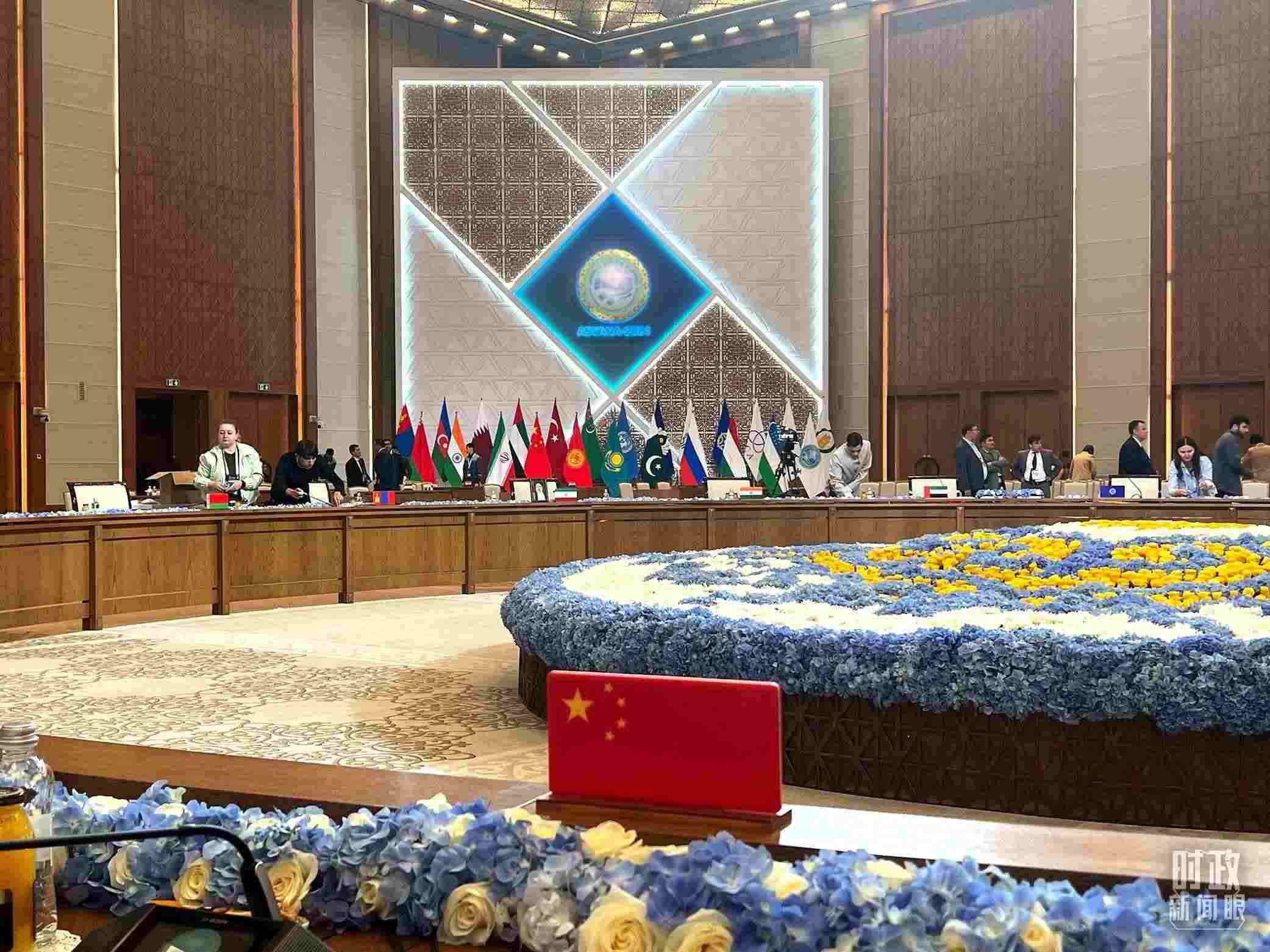 △當(dāng)天下午,“上海合作組織+”阿斯塔納峰會在這里舉行,這是會議開始前。(總臺央視記者程鋮拍攝)