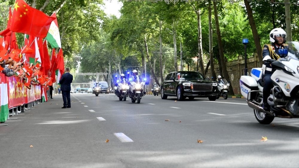 赴機場途中,當?shù)厝A僑華人和中資機構代表在道路兩旁揮舞中塔兩國國旗,祝賀習近平主席對塔吉克斯坦國事訪問取得圓滿成功。