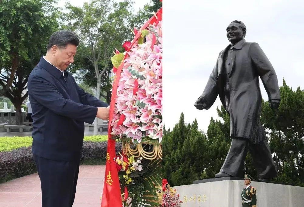 △2020年10月14日,深圳經(jīng)濟(jì)特區(qū)建立40周年慶祝大會(huì)在廣東深圳市隆重舉行,習(xí)近平總書記在會(huì)上發(fā)表重要講話。這是當(dāng)天下午,總書記來(lái)到蓮花山公園,向鄧小平同志銅像敬獻(xiàn)花籃。