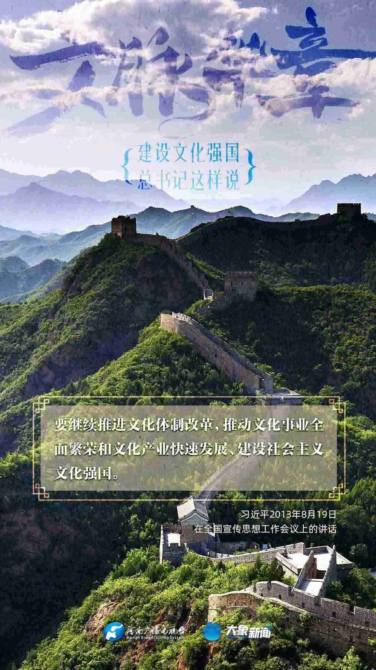 黨的十八大以來,習(xí)近平總書記站在全局和戰(zhàn)略高度,就建設(shè)社會主義文化強(qiáng)國提出一系列新思想新觀點(diǎn)新論斷,為我們堅(jiān)定文化自信,堅(jiān)持中國特色社會主義文化發(fā)展道路,提供了指引。大象新聞與您一起學(xué)習(xí)、領(lǐng)悟。