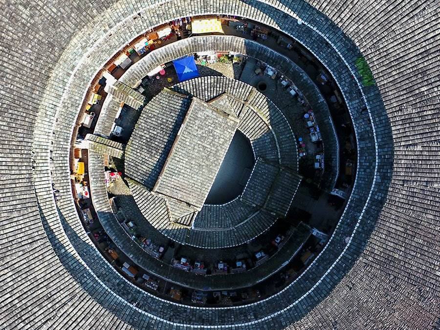 世界遺產(chǎn)委員會(huì)評(píng)價(jià):“土樓以其建筑傳統(tǒng)和功能作為典型范例被列入,它體現(xiàn)了一種特定類型的公共生活和防御組織,并且體現(xiàn)了人類居住與自然環(huán)境和諧相處?!?/p>