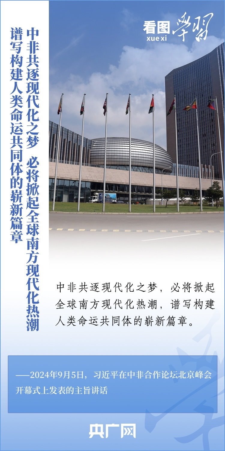 “中非共逐現代化之夢,必將掀起全球南方現代化熱潮,譜寫構建人類命運共同體的嶄新篇章。”習近平主席表示,中非關系正處于歷史最好時期,中非將攜手推進六個現代化,并推動實施“十大伙伴行動”。一起來學習!
