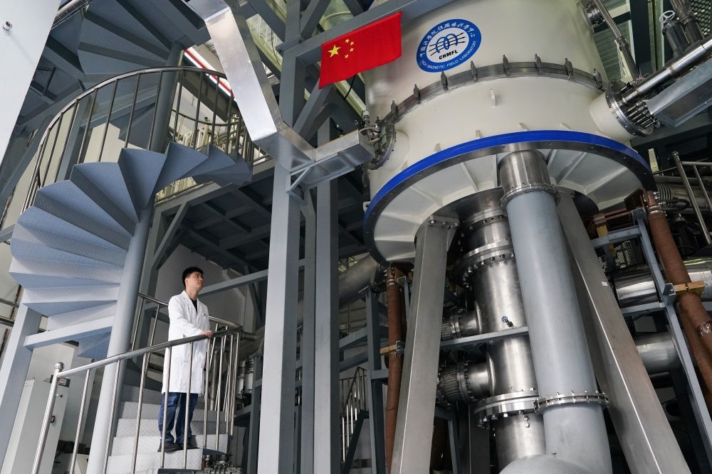 這是在中國科學(xué)院合肥物質(zhì)科學(xué)研究院強(qiáng)磁場(chǎng)科學(xué)中心拍攝的國家重大科技基礎(chǔ)設(shè)施“穩(wěn)態(tài)強(qiáng)磁場(chǎng)實(shí)驗(yàn)裝置”混合磁體(2022年10月17日攝)。