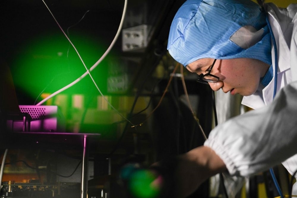 2022年1月31日,中國科學(xué)技術(shù)大學(xué)學(xué)生在中國科學(xué)院量子信息重點(diǎn)實(shí)驗(yàn)室做實(shí)驗(yàn)。