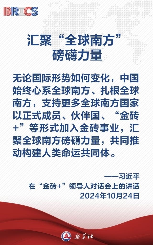 當(dāng)?shù)貢r(shí)間10月24日上午,國(guó)家主席習(xí)近平在喀山會(huì)展中心出席“金磚+”領(lǐng)導(dǎo)人對(duì)話會(huì)并發(fā)表題為《匯聚“全球南方”磅礴力量 共同推動(dòng)構(gòu)建人類(lèi)命運(yùn)共同體》的重要講話,闡明中國(guó)主張——