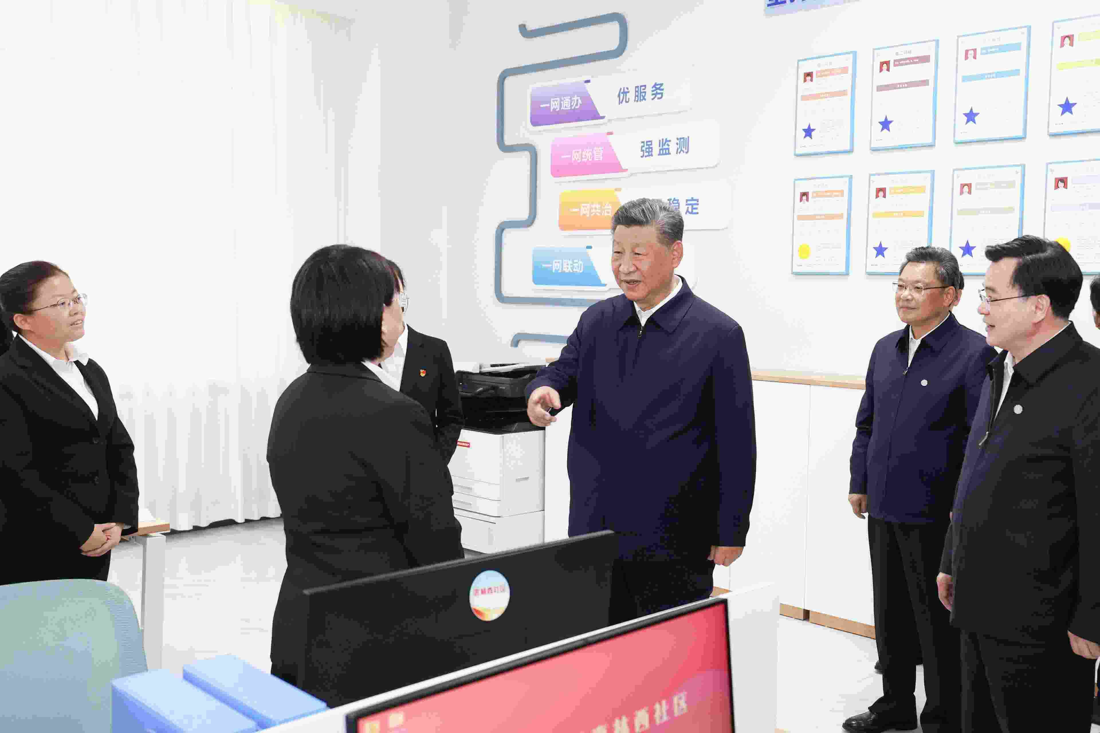 學院的電子屏幕上,展示了該校畢業(yè)生去向落實率的柱狀圖,總書記仔細察看,反復詢問具體數(shù)據(jù)。