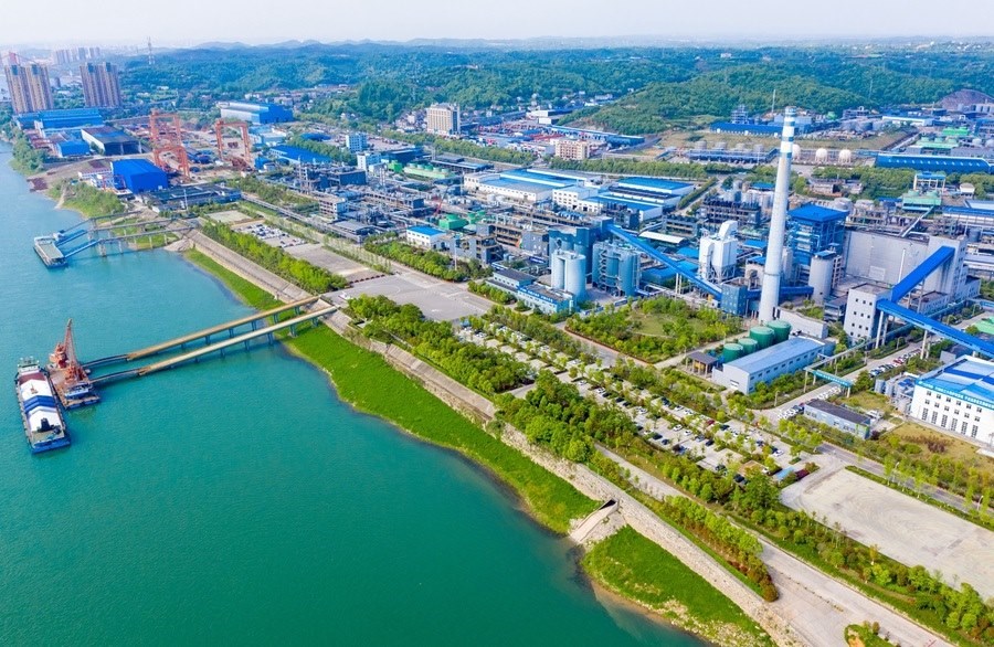 這是位于湖北省宜昌市的興發(fā)集團宜昌新材料產(chǎn)業(yè)園(2022年4月19日攝,無人機照片)。新華社發(fā)