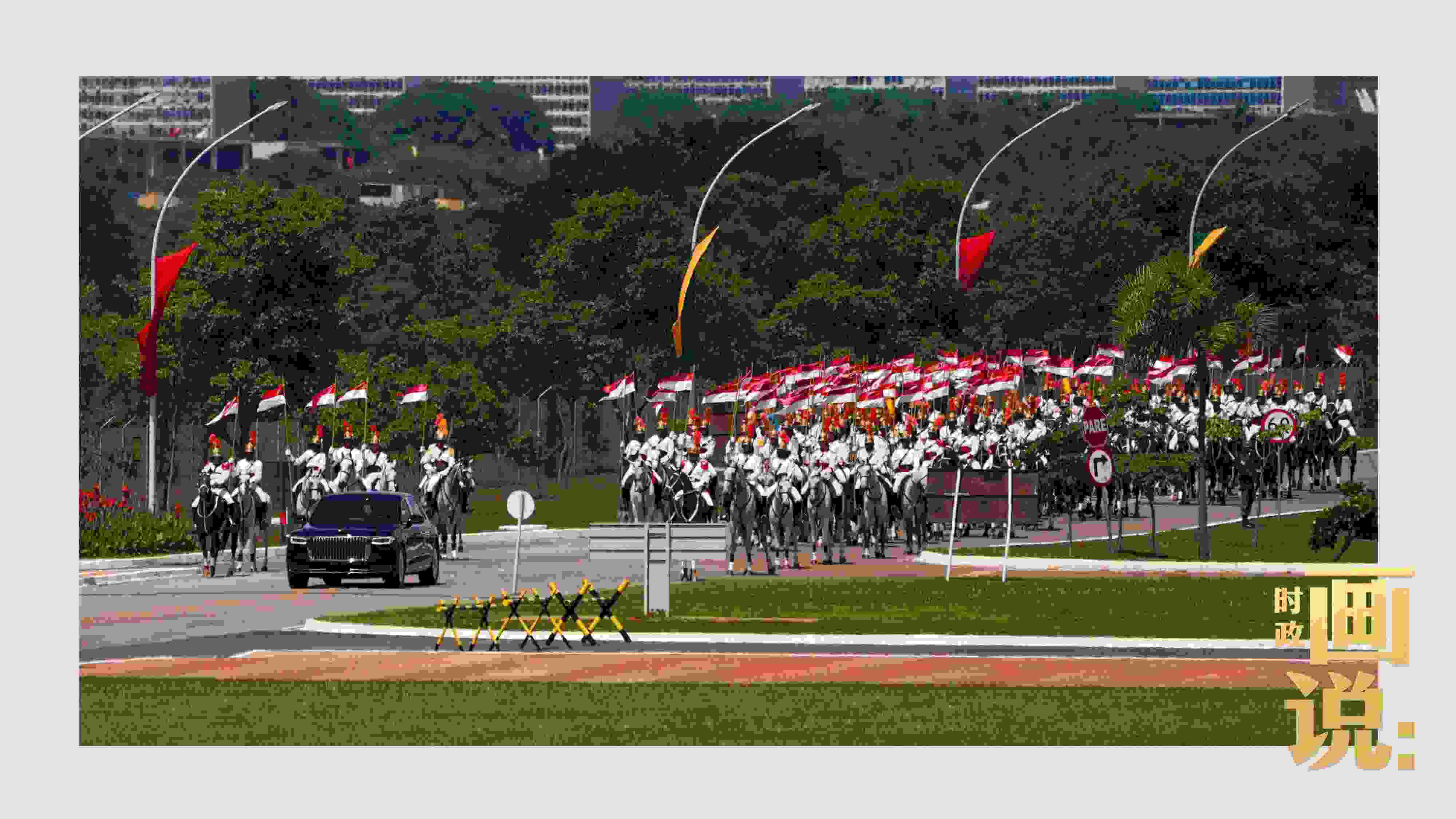 騎兵護(hù)衛(wèi)習(xí)近平主席專車抵達(dá)儀式現(xiàn)場(chǎng),巴西藝術(shù)家用中文深情唱響中國(guó)經(jīng)典民歌《我的祖國(guó)》,現(xiàn)場(chǎng)氣氛隆重?zé)崃摇?/p>