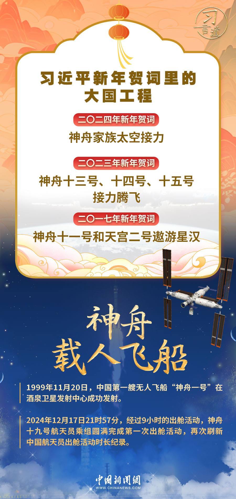 習(xí)近平主席在二〇二五年新年賀詞中,為中國人逐夢星辰大海的豪情壯志喝彩。新年之際,讓我們一起重溫習(xí)近平主席在新年賀詞中點贊的大國工程。