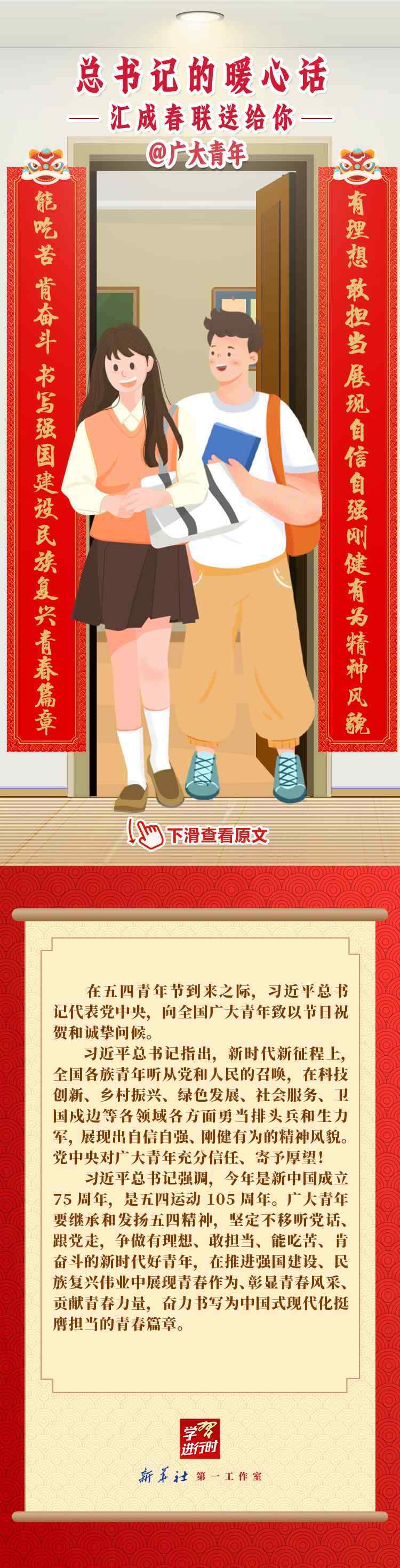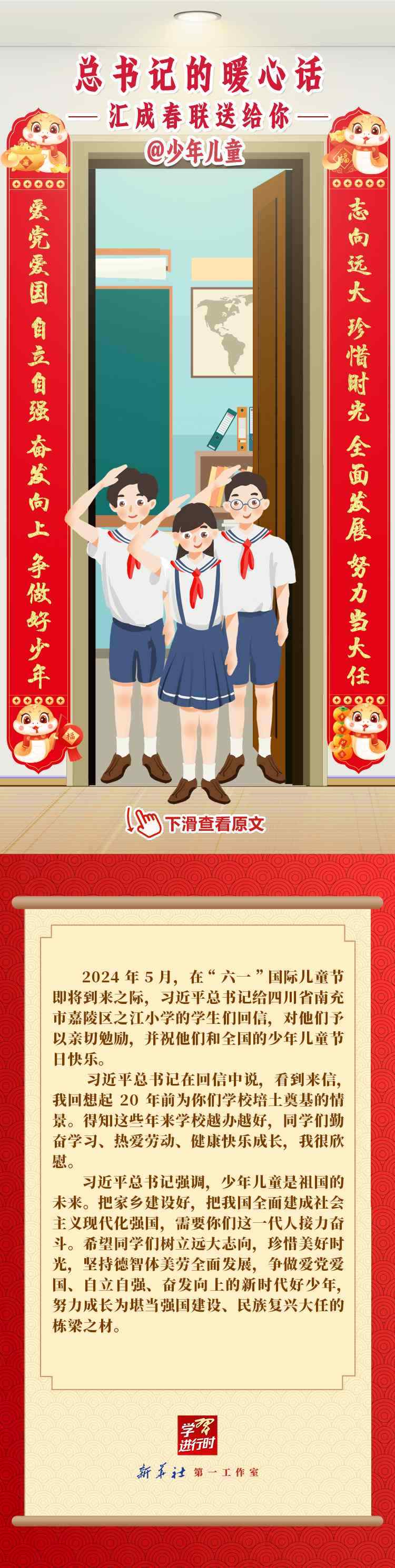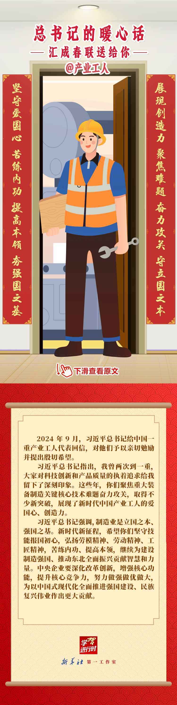 【學習進行時】過春節(jié),貼春聯(lián),寄托人們對新年的美好愿望。過去一年,習近平總書記在不同場合點贊各行各業(yè)奮斗者,說了許多暖心話。新春之際,我們匯編成聯(lián),向新征程上的每一位“主角”致敬,送上新春的祝福。