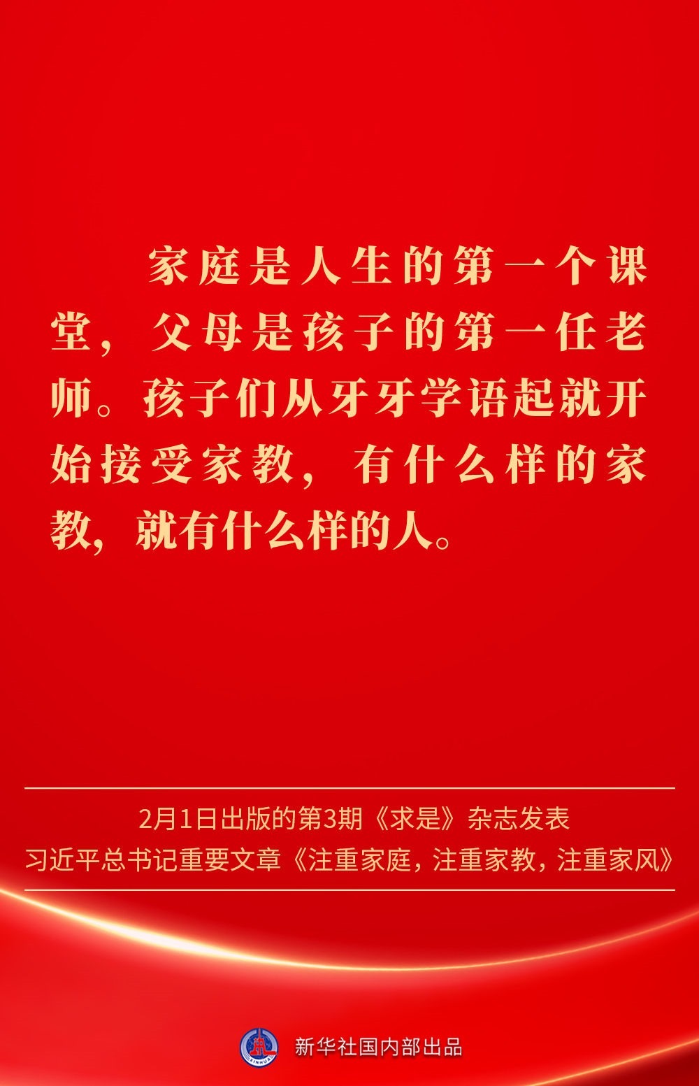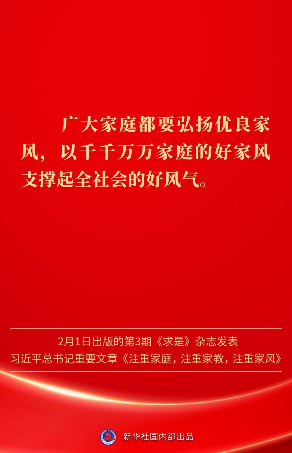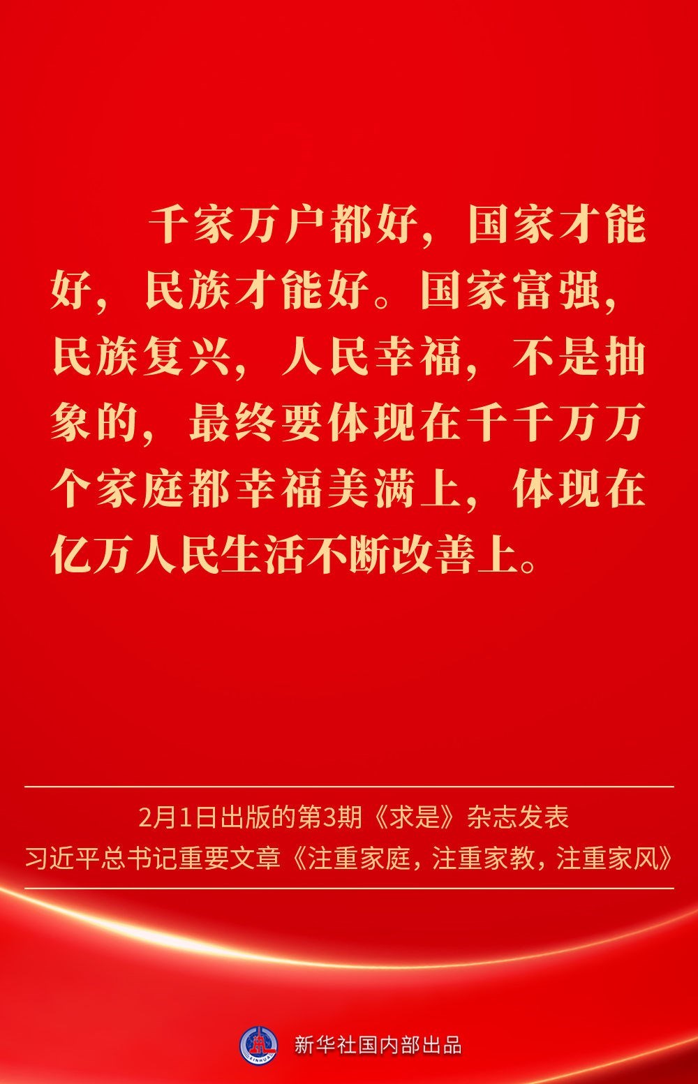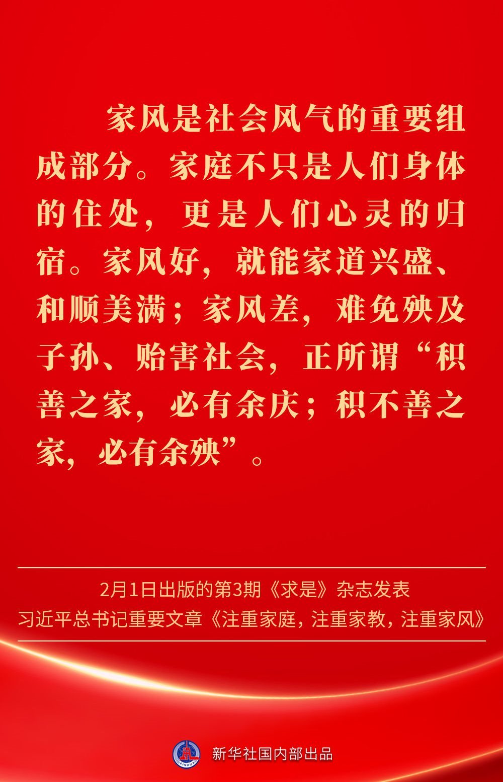 萬(wàn)家團(tuán)圓共慶新春佳節(jié)之際,2月1日出版的第3期《求是》雜志發(fā)表習(xí)近平總書記重要文章《注重家庭,注重家教,注重家風(fēng)》。為什么要注重家庭、家教、家風(fēng)?如何做好家庭文明建設(shè)?習(xí)近平總書記這樣闡述——