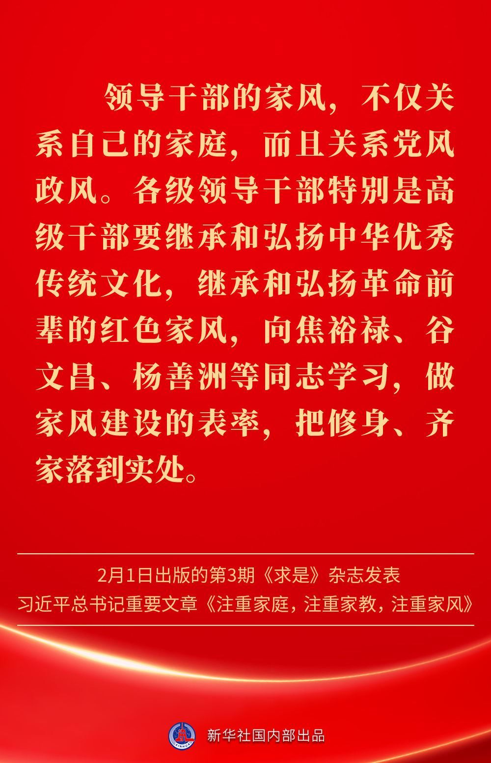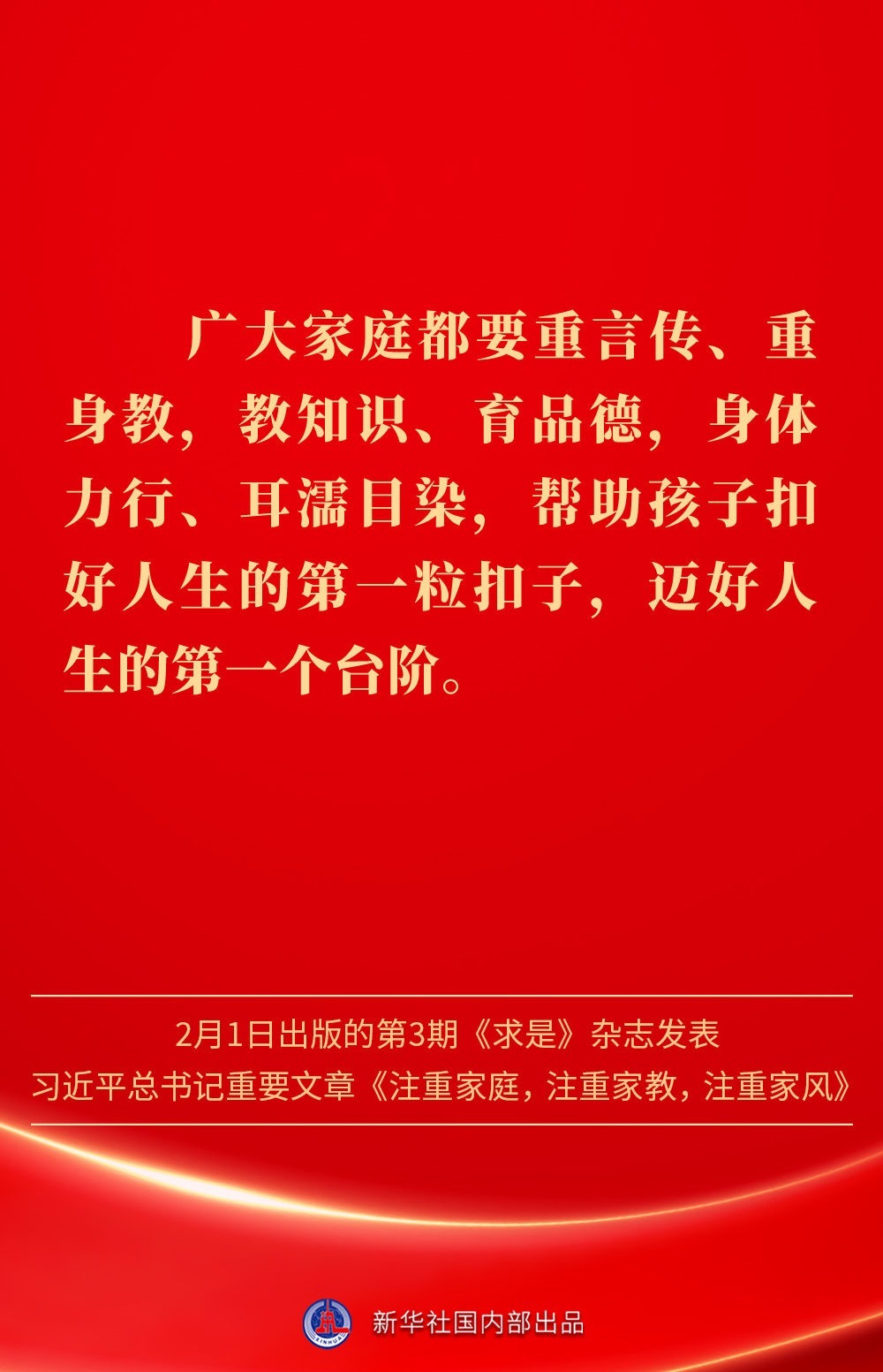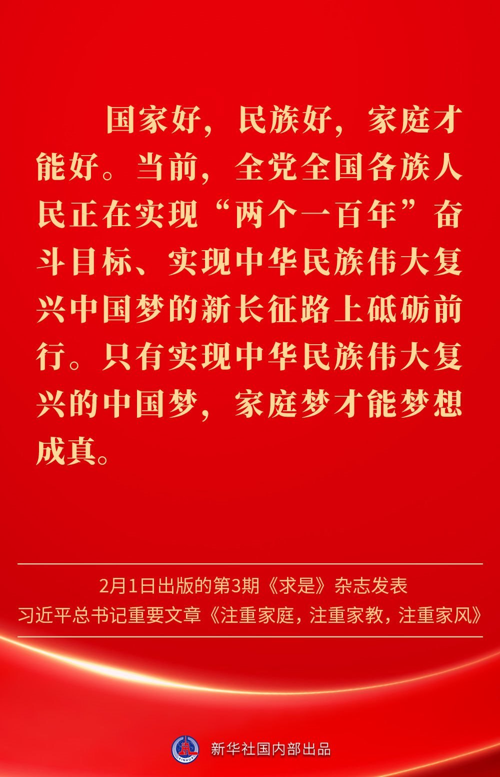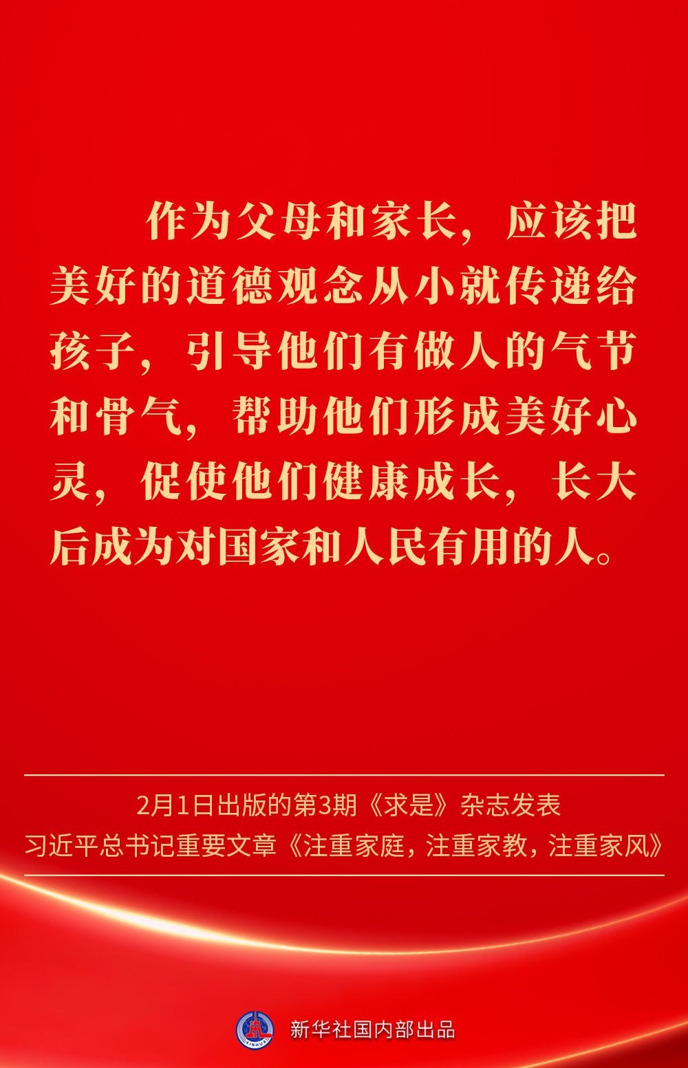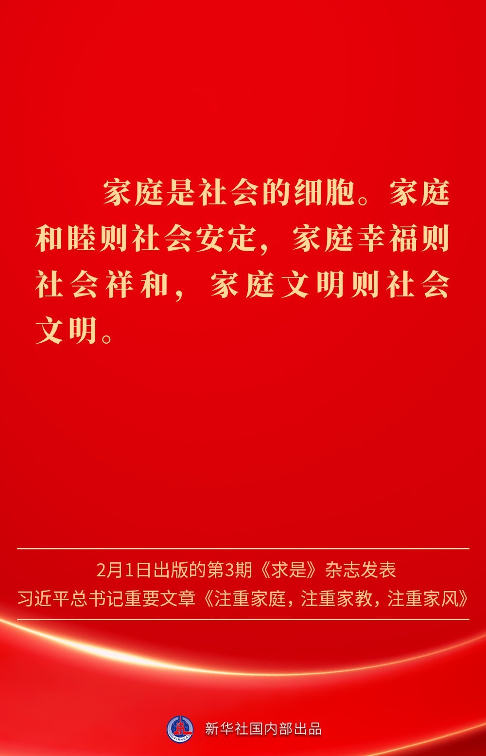 萬(wàn)家團(tuán)圓共慶新春佳節(jié)之際,2月1日出版的第3期《求是》雜志發(fā)表習(xí)近平總書記重要文章《注重家庭,注重家教,注重家風(fēng)》。為什么要注重家庭、家教、家風(fēng)?如何做好家庭文明建設(shè)?習(xí)近平總書記這樣闡述——