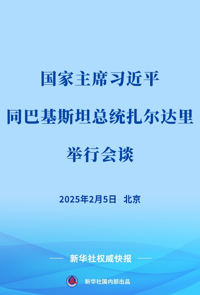 2月5日下午,國家主席習(xí)近平在北京人民大會堂同來華進行國事訪問的巴基斯坦總統(tǒng)扎爾達里舉行會談。