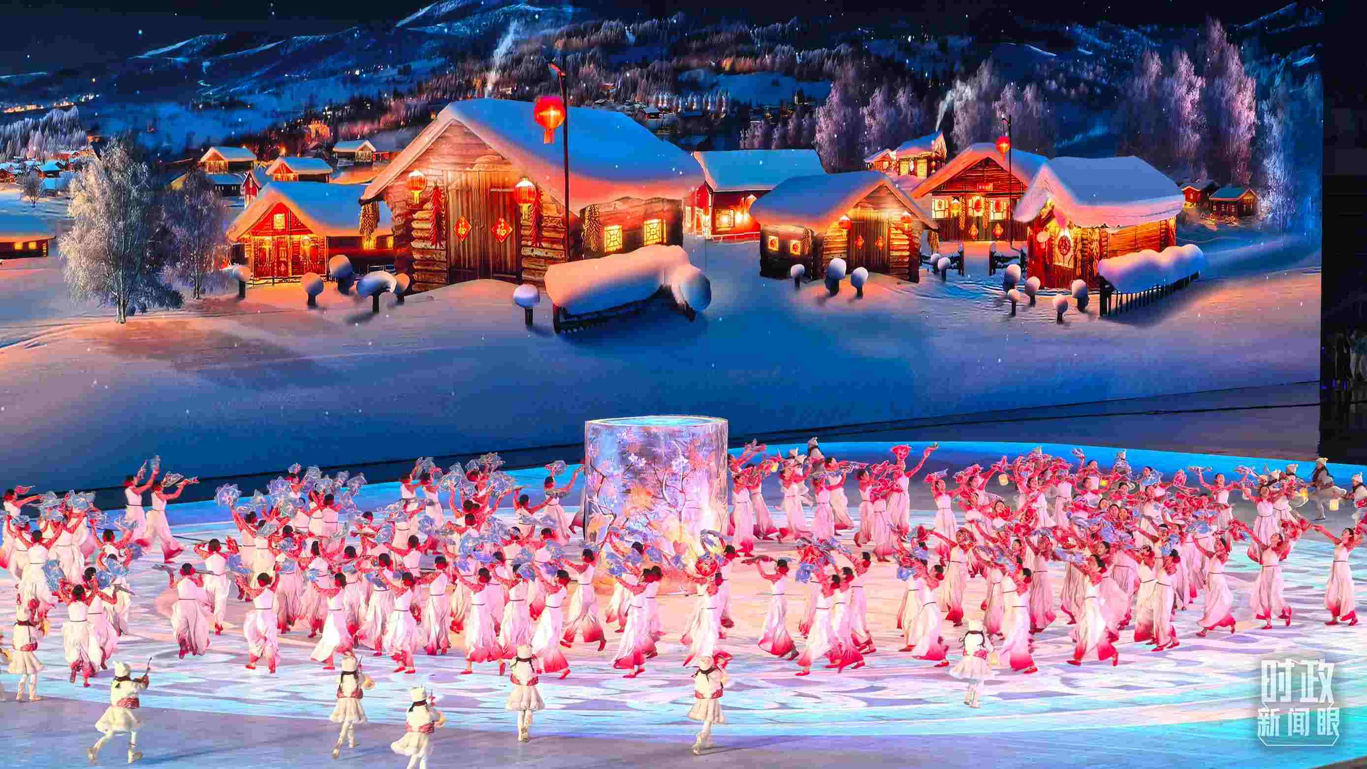 開幕式以“哈爾濱、中國、亞洲”的地域遞進層次展開。一盞冰燈映照新春,講述從啟夢、追夢到圓夢的冰雪夢想。從“冰晶藍”到“中國紅”,旋轉的“冰凌花”盡顯喜迎八方賓朋的熱情。