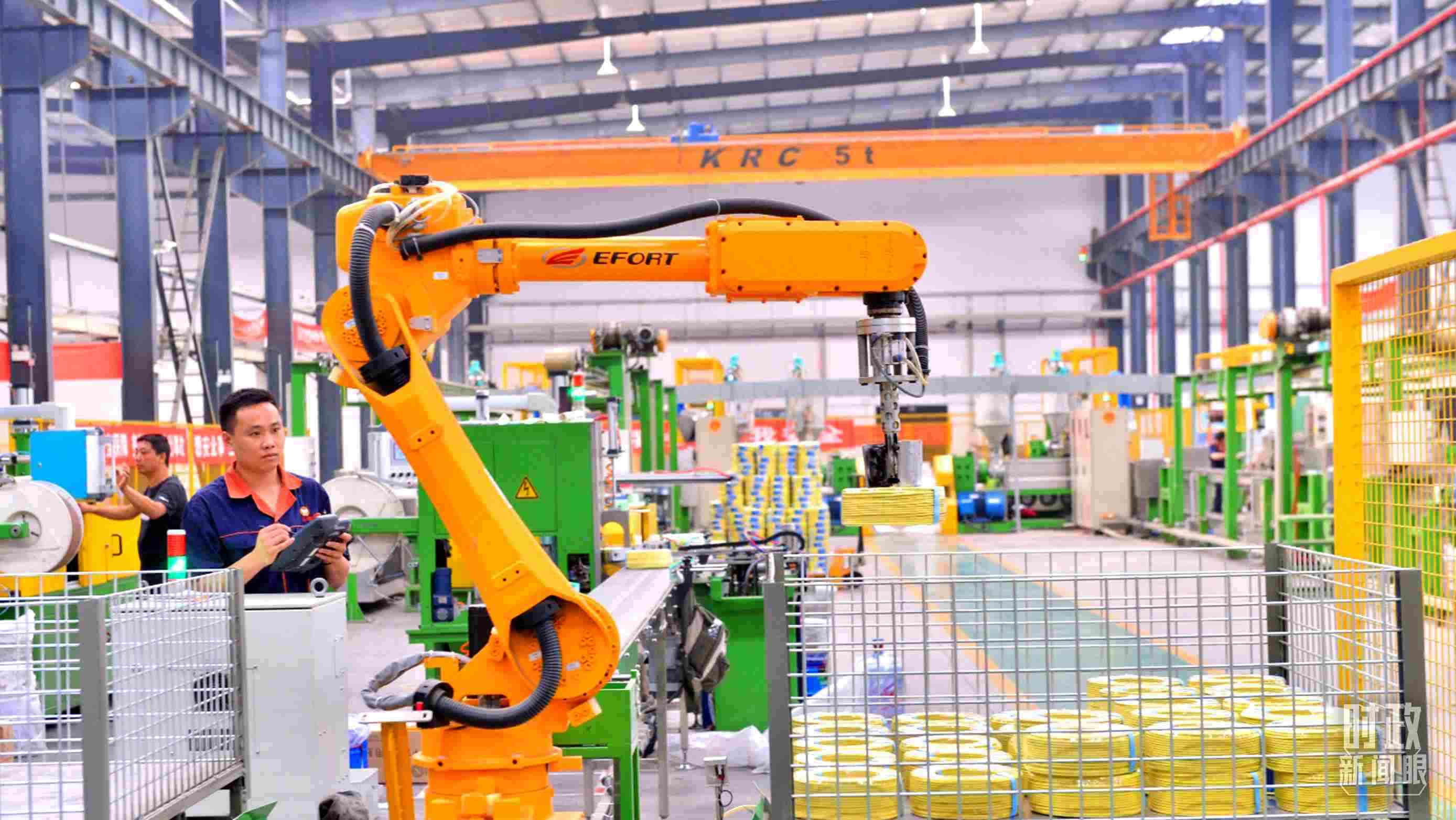△貴州省貴陽(yáng)市一家電線電纜企業(yè)的智能制造及智能倉(cāng)儲(chǔ)一體化車間。(總臺(tái)記者張秀練拍攝)