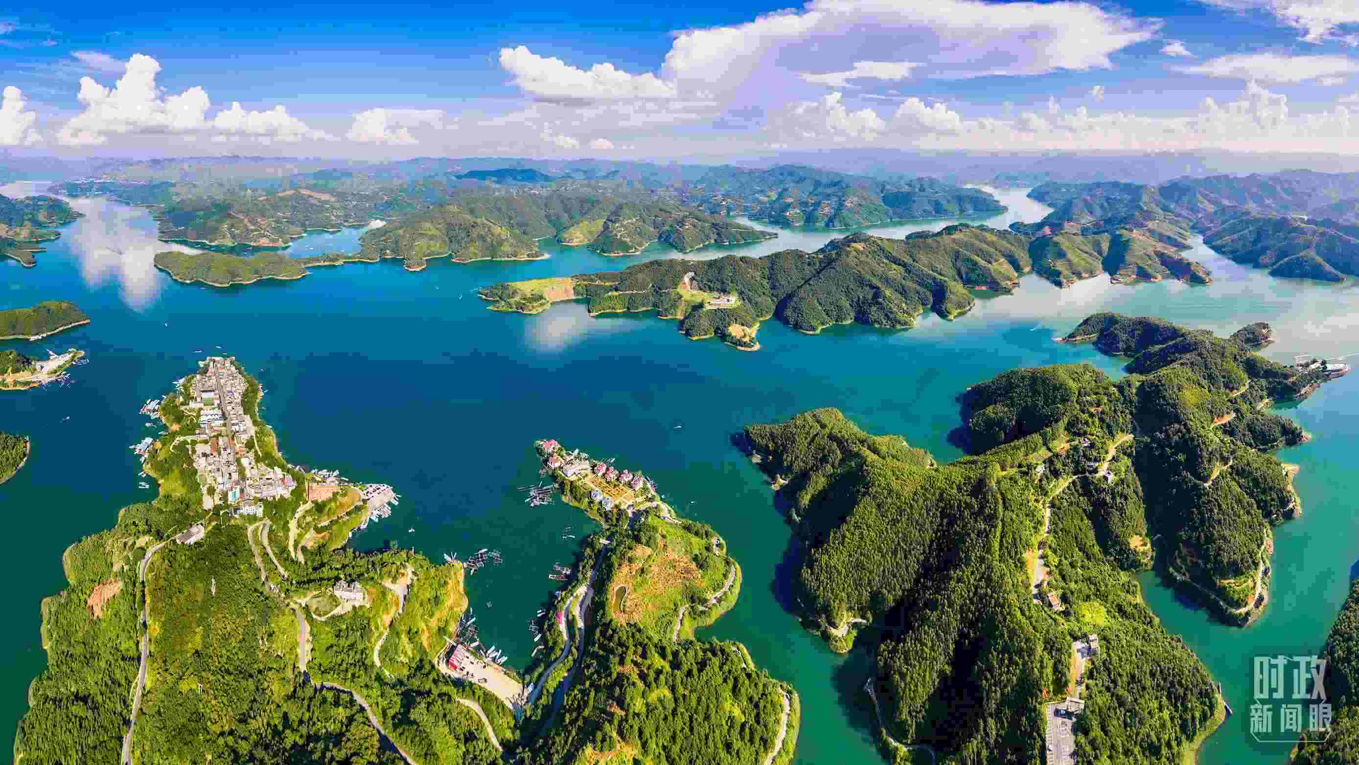 △珠江上游重要水源供給地——貴州省黔西南布依族苗族自治州興義市萬(wàn)峰湖。(總臺(tái)記者柳波拍攝)