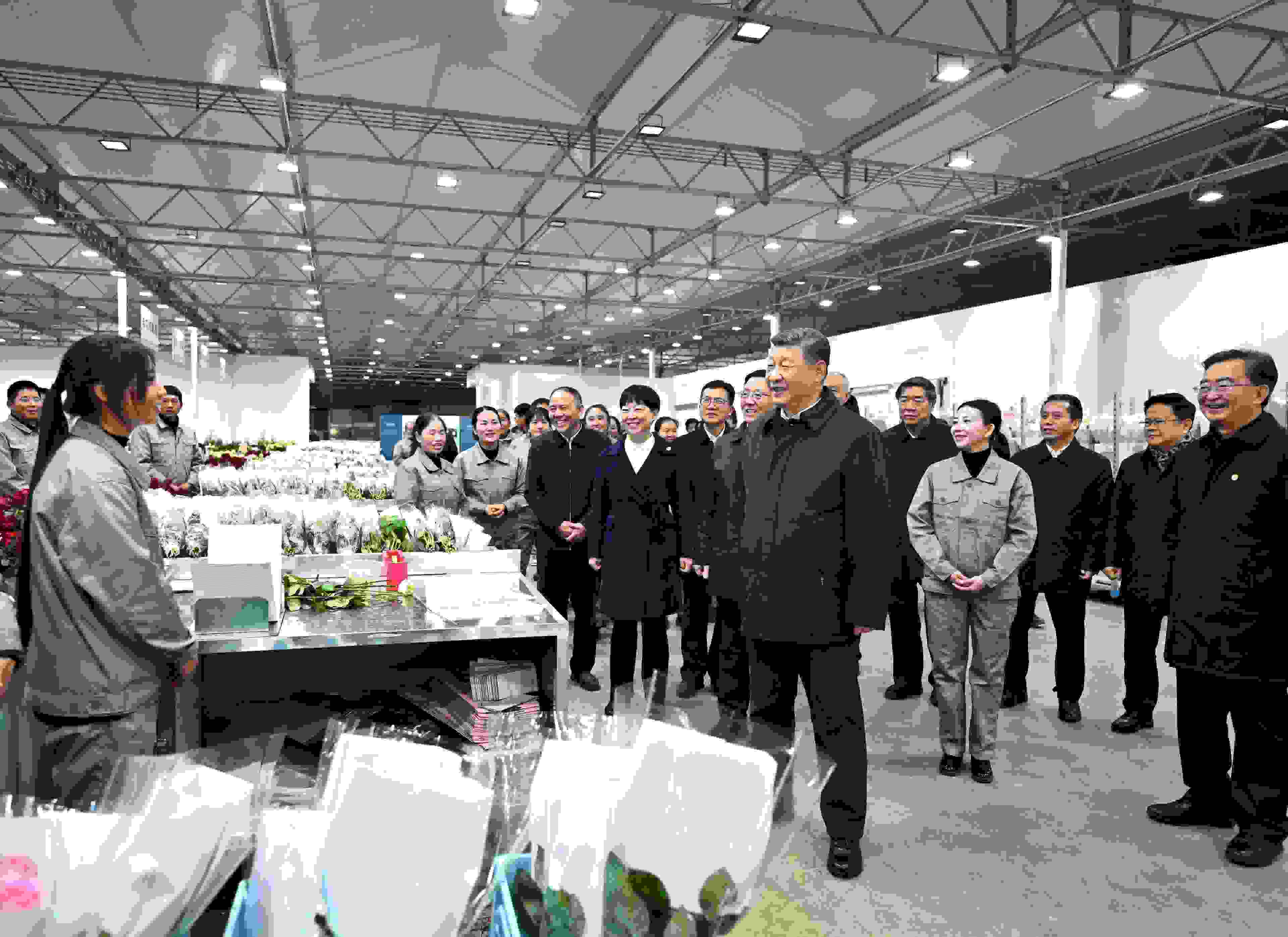 習(xí)近平總書(shū)記19日下午來(lái)到云南麗江現(xiàn)代花卉產(chǎn)業(yè)園,同現(xiàn)場(chǎng)村民和技術(shù)人員親切交流,向他們?cè)儐?wèn)花卉品種、市場(chǎng)銷(xiāo)路、收入等情況。當(dāng)?shù)卮迕窀嬖V總書(shū)記,在這里工作,現(xiàn)在一個(gè)月收入4000多元,旺季可達(dá)7000多元,“種花這個(gè)工作干得特別開(kāi)心”。習(xí)近平總書(shū)記高興地說(shuō),你們這個(gè)事業(yè)搞得很興旺,符合現(xiàn)代農(nóng)業(yè)發(fā)展方向。祝你們的生活像花兒一樣美!