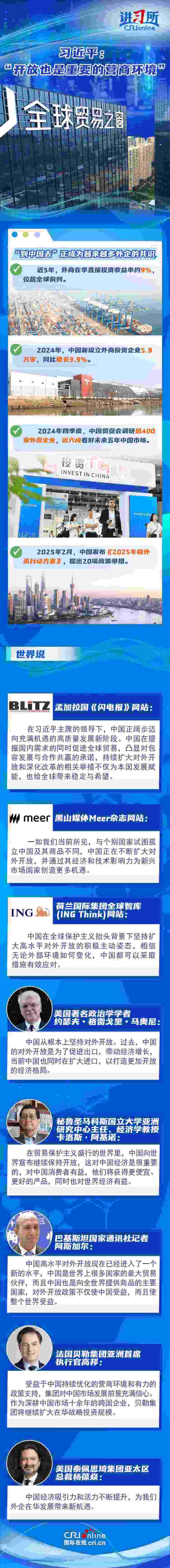 “中國開放的大門不會(huì)關(guān)閉,只會(huì)越開越大?!比ツ?2月,中國將“擴(kuò)大高水平對(duì)外開放,穩(wěn)外貿(mào)、穩(wěn)外資”列為今年政府重點(diǎn)任務(wù)。新年以來,隨著政策紅利持續(xù)釋放,外資不斷用行動(dòng)為中國投下“信心票”:德國光電行業(yè)巨頭蔡司宣布將在上海購地自建大中華區(qū)總部園區(qū),意大利百旺集團(tuán)亞洲總部暨新工廠在蘇州高新區(qū)開業(yè),日本豐田汽車決定在華獨(dú)資設(shè)立雷克薩斯純電動(dòng)汽車及電池的研發(fā)和生產(chǎn)公司……在他們看來,中國持續(xù)優(yōu)化營商環(huán)境、擴(kuò)大高水平開放,經(jīng)濟(jì)吸引力和活力不斷提升,不僅為中國發(fā)展賦能,也給全球帶來穩(wěn)定與希望。