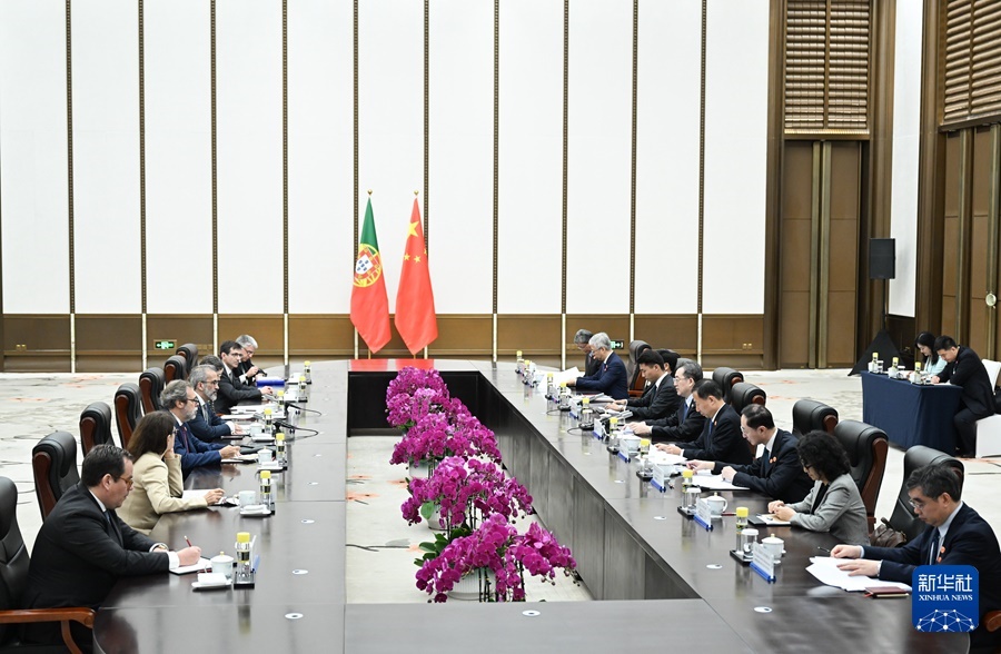 在會(huì)見(jiàn)蘭熱爾時(shí),丁薛祥表示,去年中葡建交45周年之際,習(xí)近平主席同德索薩總統(tǒng)互致賀電,為兩國(guó)關(guān)系發(fā)展提供了遵循。今年是中葡建立全面戰(zhàn)略伙伴關(guān)系20周年。中方愿同葡方一道,在兩國(guó)元首戰(zhàn)略引領(lǐng)下,堅(jiān)持互尊互信,拓展互利合作,深化開(kāi)放交流,推動(dòng)兩國(guó)關(guān)系不斷邁上新水平。