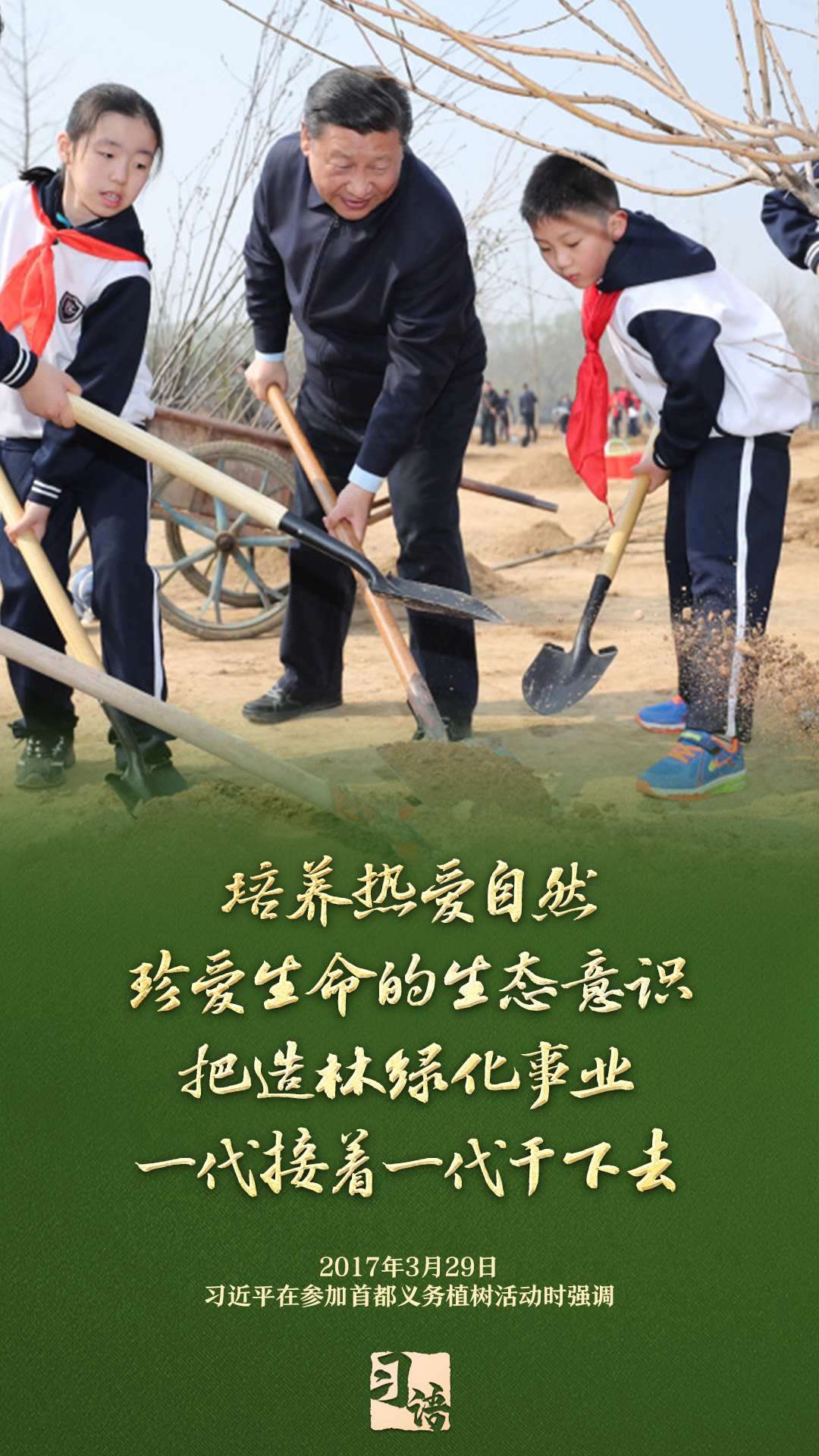 “植樹造林是一件很有意義的事情,是一項功在當(dāng)代、利在千秋的崇高事業(yè),要一以貫之、持續(xù)做下去?!弊?013年以來的13個春天里,無論晴雨,習(xí)近平總書記都會拿起鐵鍬,與干部群眾一起參加首都義務(wù)植樹活動。鏟土造坑、培土圍堰、提水澆灌,總書記身體力行種下綠色的希望,對擴綠興綠護綠、建設(shè)美麗中國提出明確要求。一起學(xué)習(xí)。