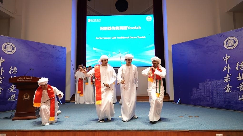 天津外國語大學(xué)的校園里,海棠盛開,綠意盎然。在此次交流學(xué)習(xí)項(xiàng)目的開班儀式上,中阿兩國學(xué)生代表以精彩演出互致青春問候:中國民族樂器齊奏《云之南》、中阿雙語演唱《我們都一樣》、節(jié)奏明快的阿聯(lián)酋傳統(tǒng)舞蹈點(diǎn)燃活動現(xiàn)場……