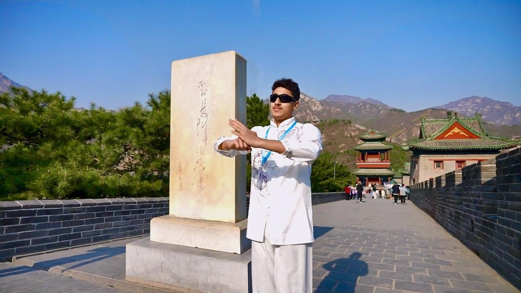 又是一年春好時。4月6日,站在長城上,愛好中國功夫的阿聯(lián)酋學(xué)生哈姆丹·艾哈邁德特意穿上嶄新的中式服裝,表演了一套中國功夫,一招一式頗有氣勢?!拔蚁朐谥袊鴮W(xué)習(xí)中文和更多功夫!”哈姆丹還是乒乓球愛好者,整天球不離手。他期待這次有機(jī)會和中國朋友一起切磋球技。
