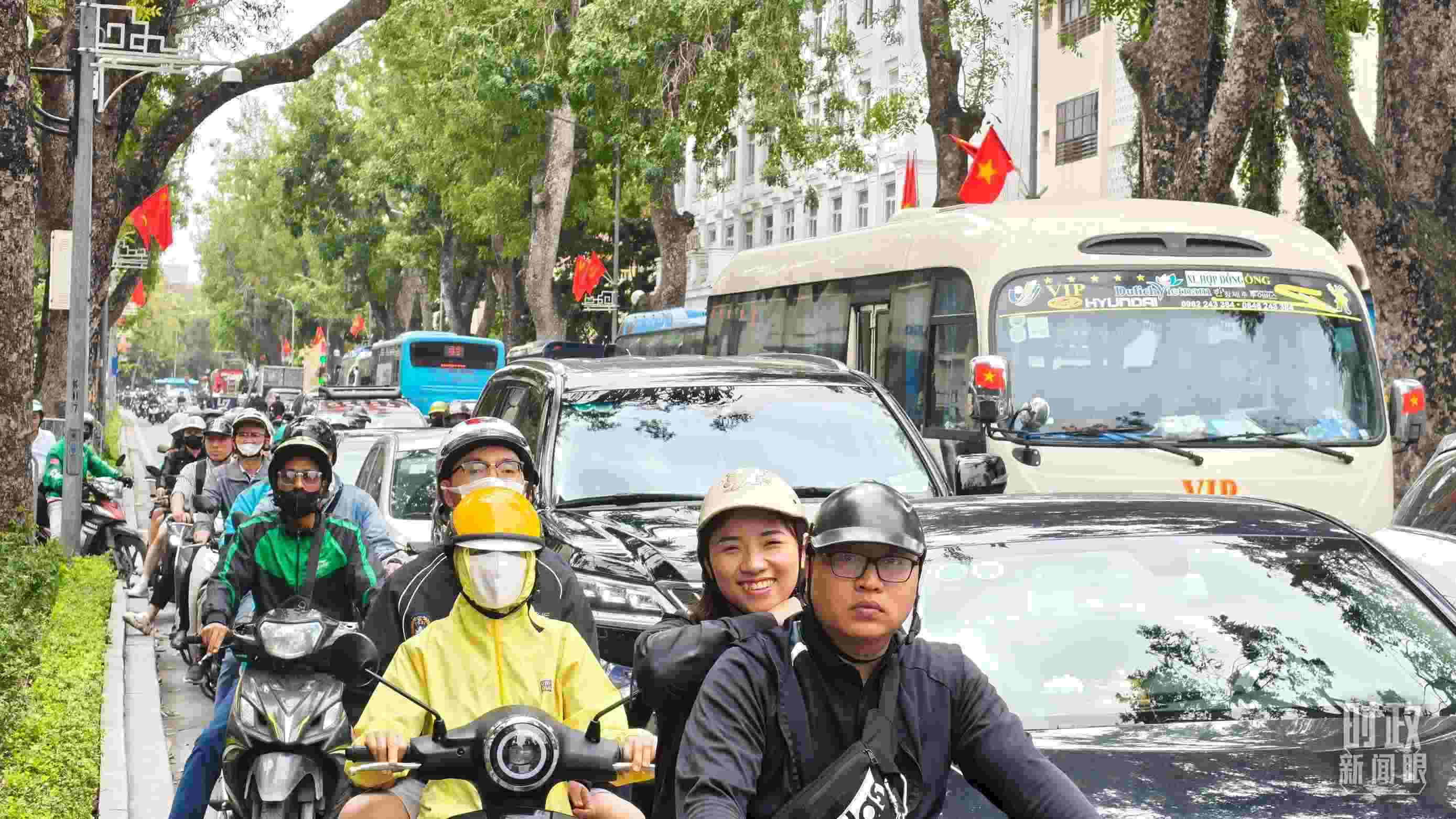 △ 河內(nèi)街道上民眾們手執(zhí)兩國國旗。(總臺國廣記者吳倩拍攝)