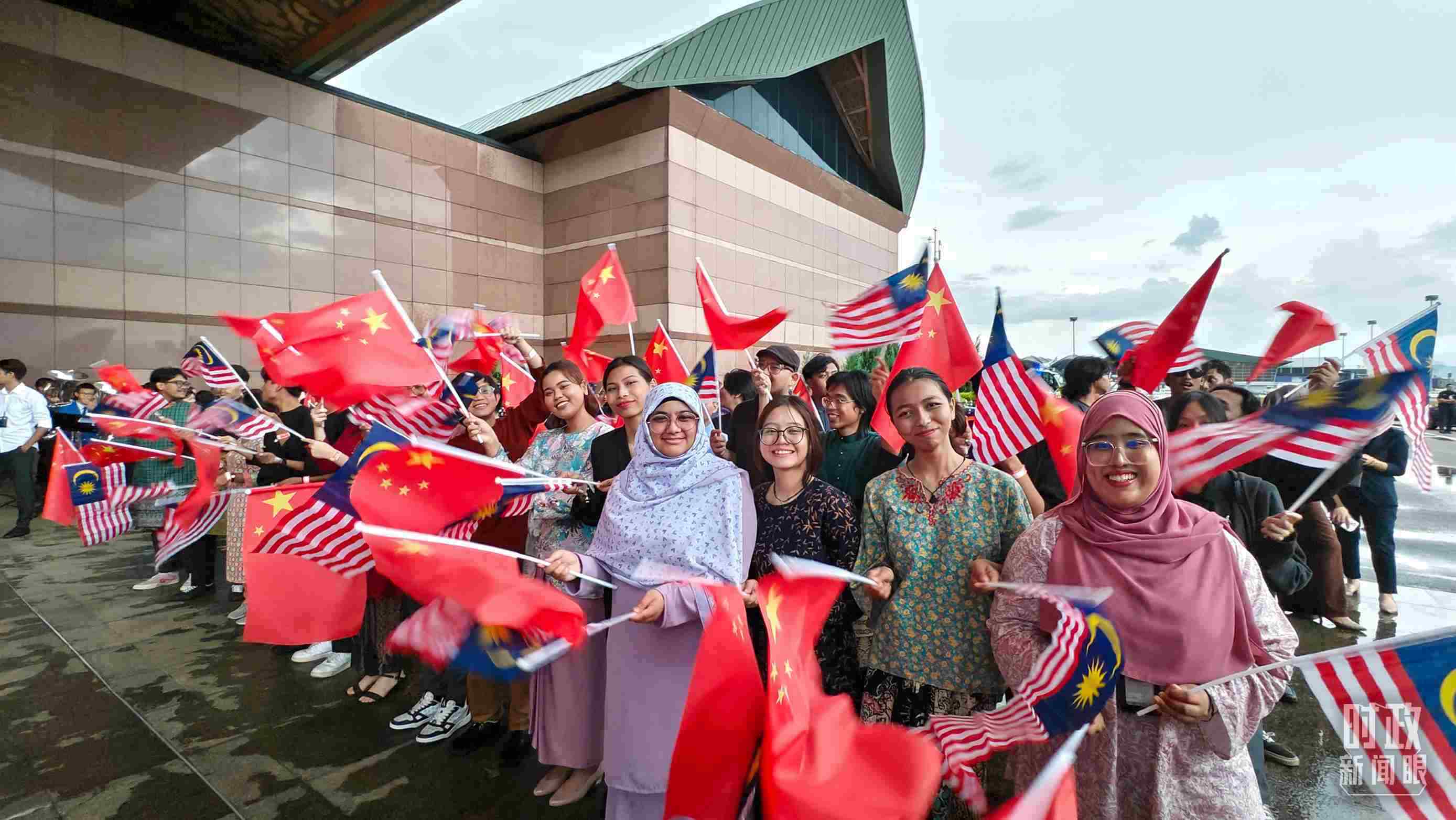 △在機(jī)場迎接習(xí)近平主席的馬來西亞當(dāng)?shù)孛癖?。(總臺(tái)央視記者韓銳拍攝)