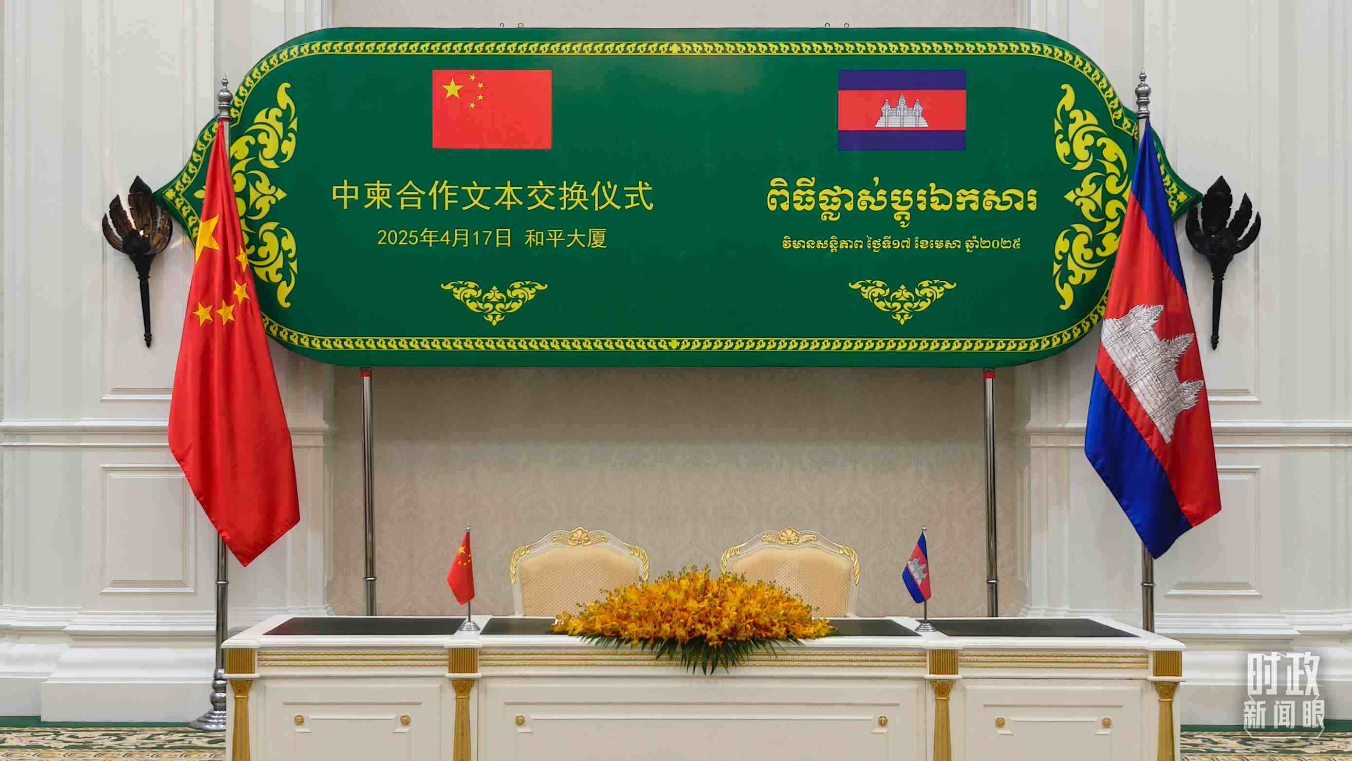 △中柬合作文本交換儀式現(xiàn)場。(總臺(tái)央視記者楊立峰拍攝)